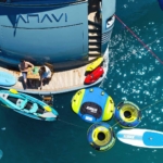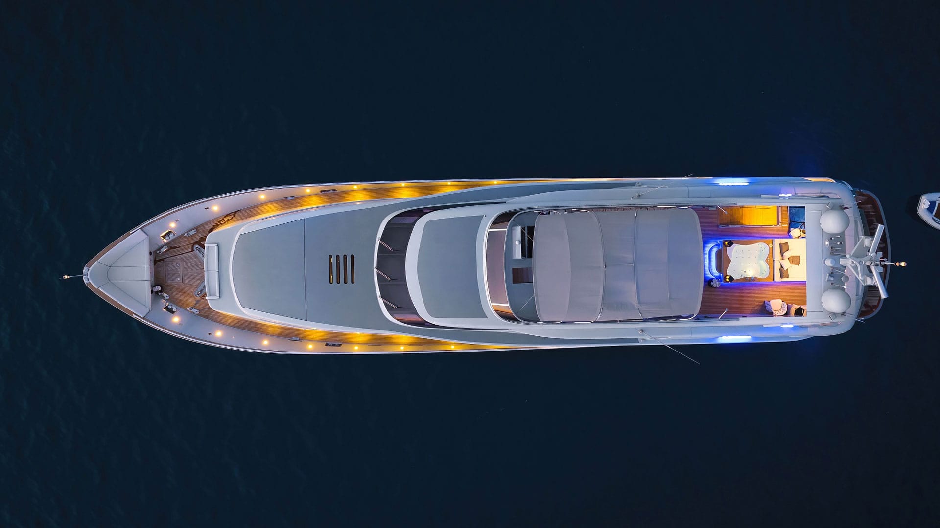 Designed by Luca Dini in collaboration with the design team in the group, ANAVI is a 35 metre long superyacht built on aluminum alloy which travels at 28 knots and can reach a maximum speed of 30. The characteristic V–shape of the keel is designed by Bacicalupo.