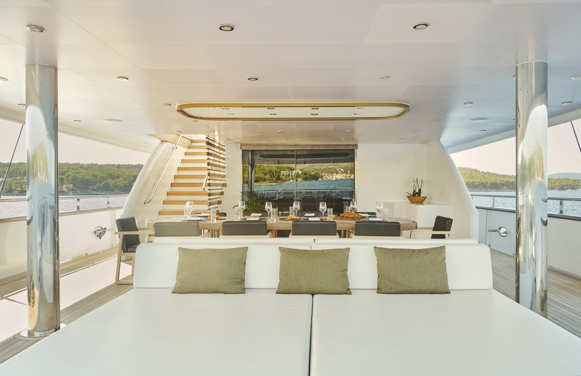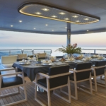 The aft deck has a cushioned platform offering an abundance of space with a beautiful dining table for al-fresco dining. Hard top at the aft deck providing lots of sun shade
