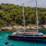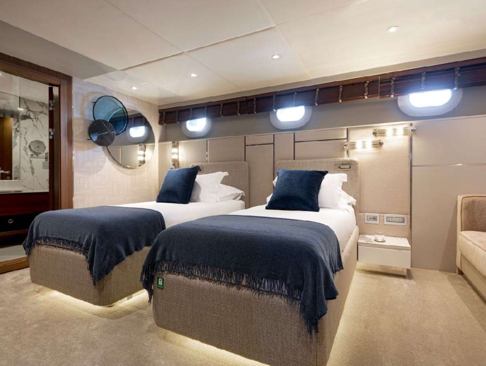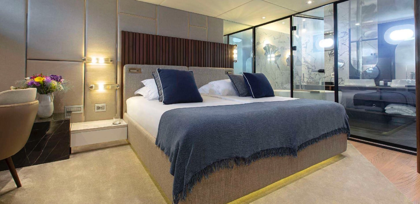 Inside, 6 luxurious staterooms, featuring a full-beam Master and VIP suite with a private entrance, can accommodate up to 12 persons.