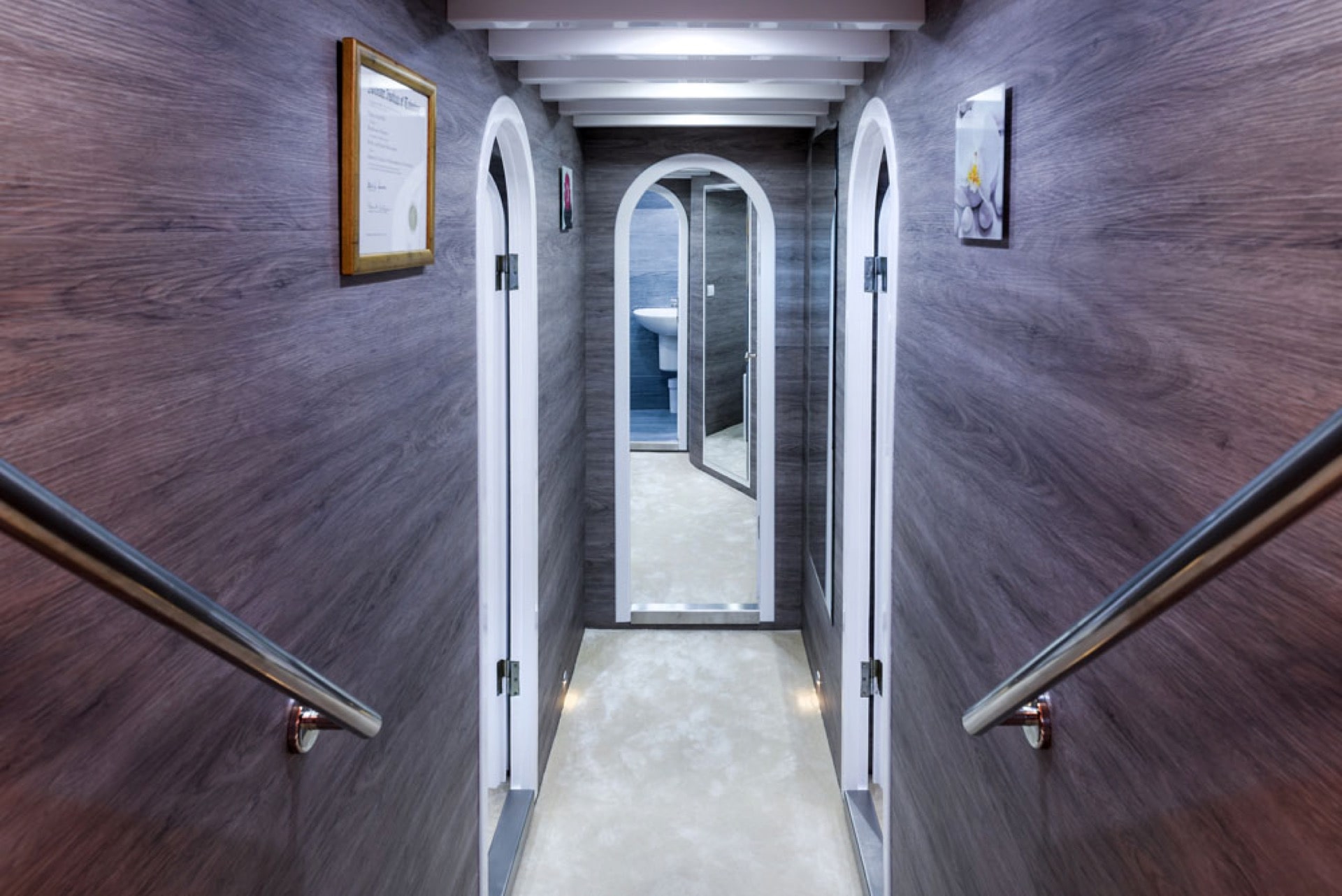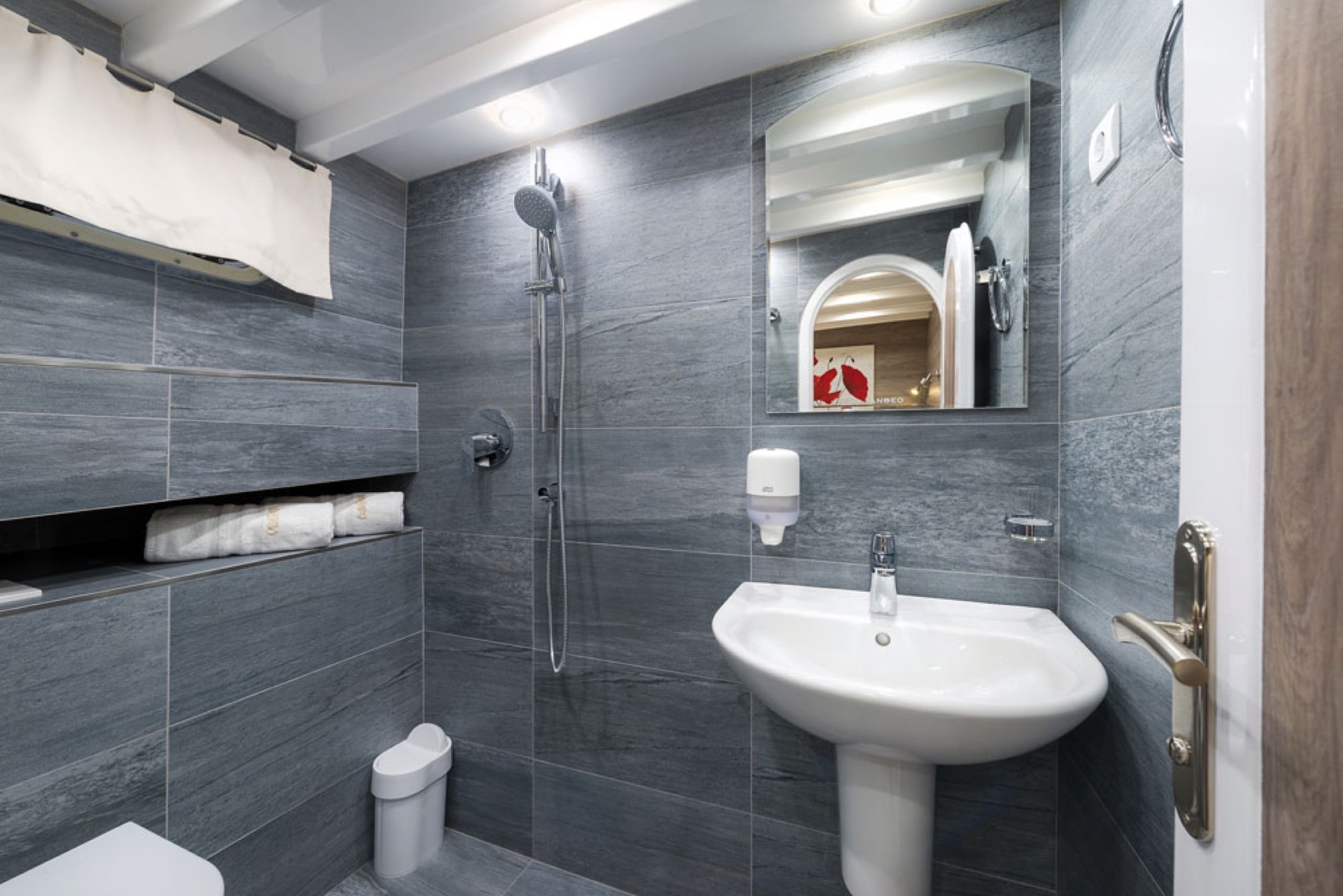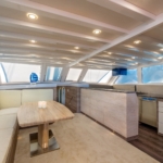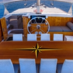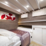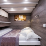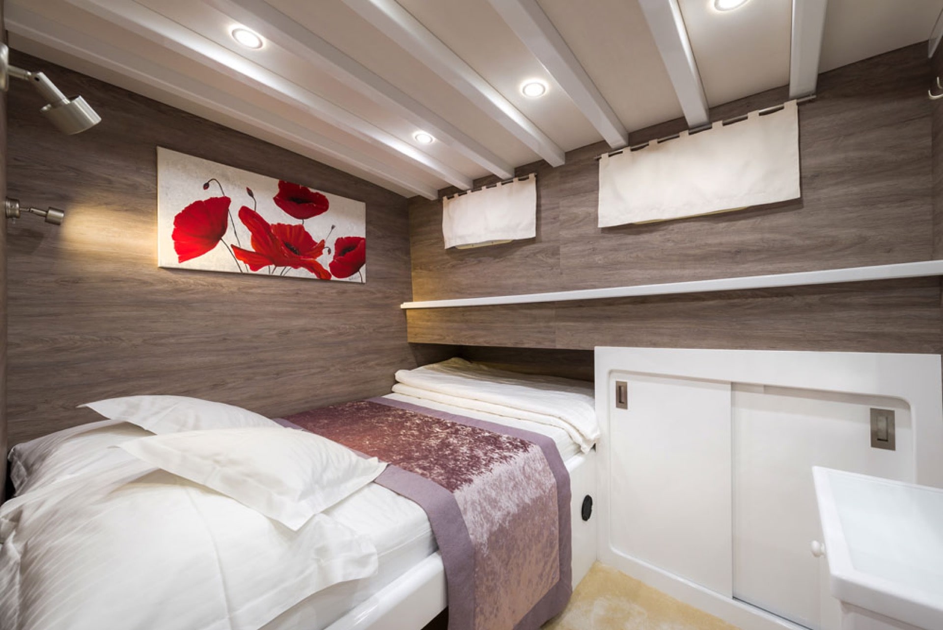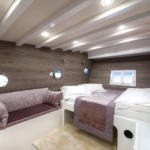 Salon areas: The salon is an exquisite combination of modern and traditional, with highly polished dark and light wood. The salon has a dining table and sofa, as well as the boat bar and the galley. The corridors lead to 4 cabins in the front of the ship and 1 cabin in the back. The cabins are unique, different from any other gulet in the Adriatic, with a very contemporary look and lovely decorated bathrooms