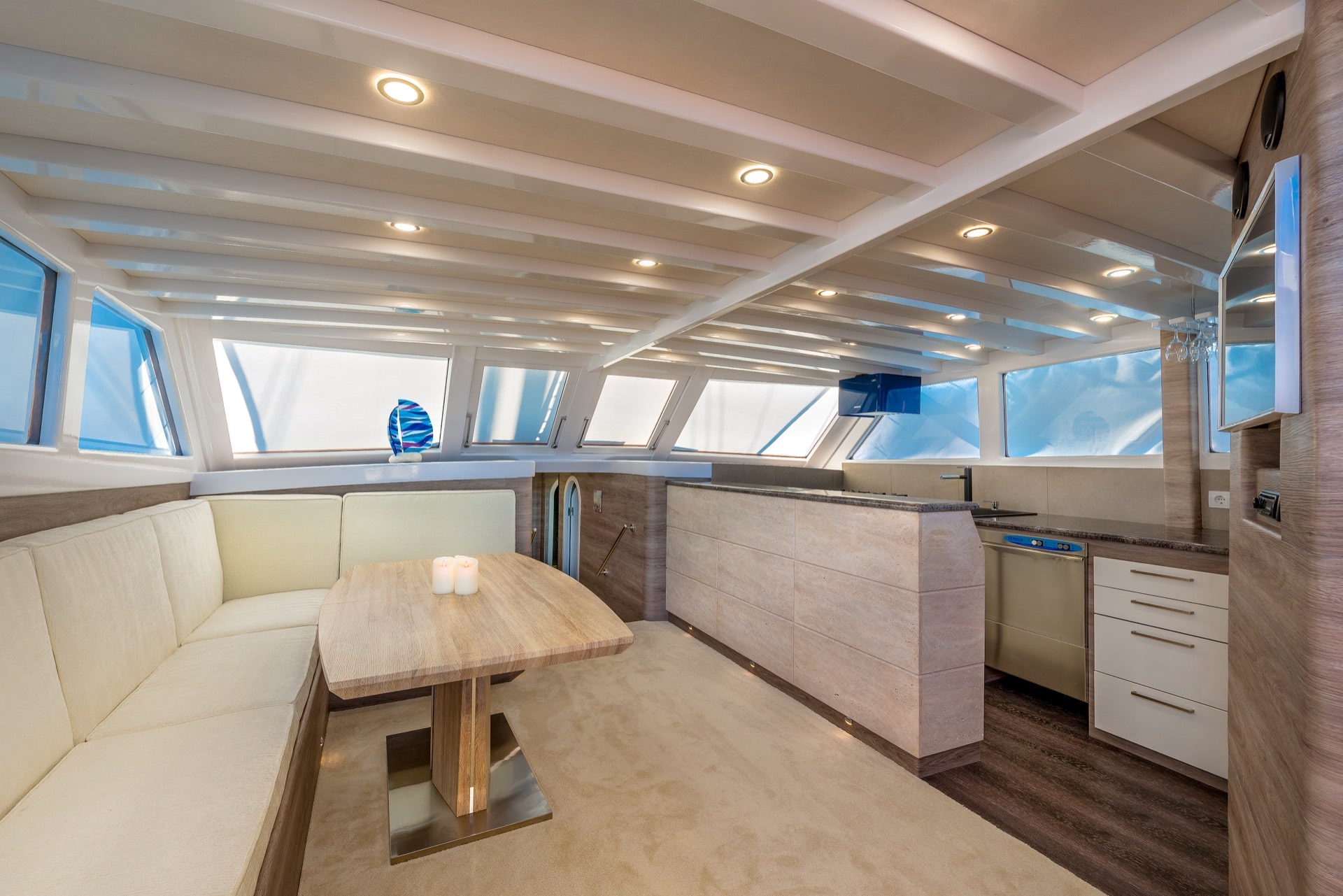Galley & crew quarters: kitchen galley features all necessary equipment – including ovens, grill, refrigerators and deep freezers, BBQ. The crew quarters are separate from the guests with private access at the bow.