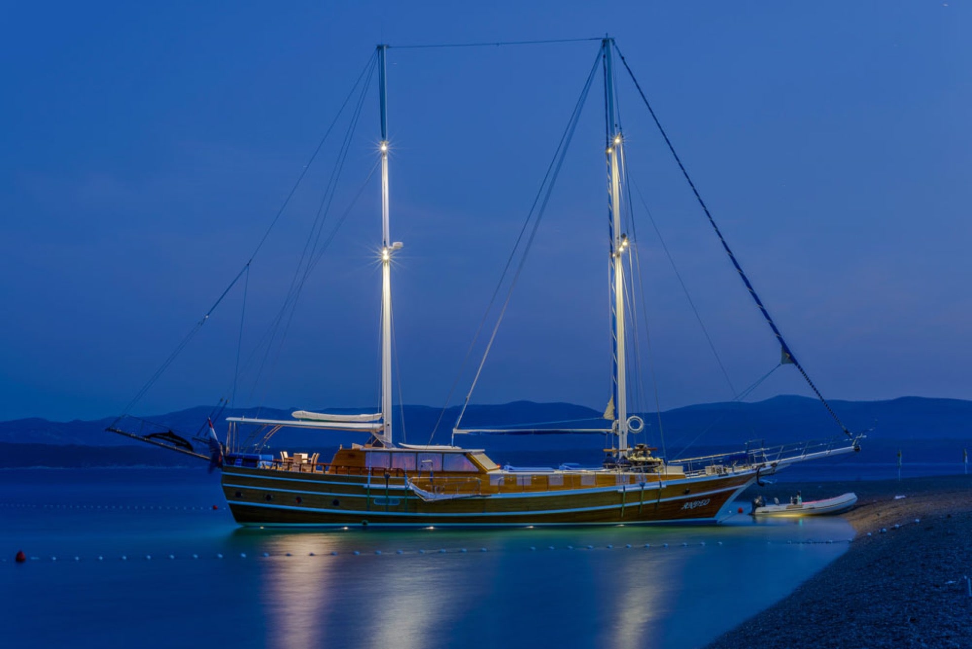 If you are looking to experience the beauty of the Adriatic sea on a modern, traditional gulet, then gulet Andjeo is the right gulet for you. It is a boat full of surprises. On the outside, it seems like a beautiful, well maintained gulet. However, once you see the interior, you will be convinced that you are standing in a top class modern yacht. One of the best maintained gulet on the Adriatic is newly refitted in 2009 and offers crew flexibility and will meet anyones standards and way of travel.