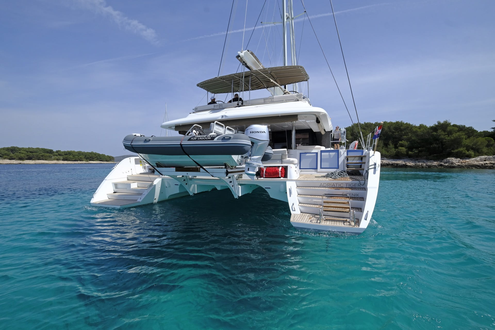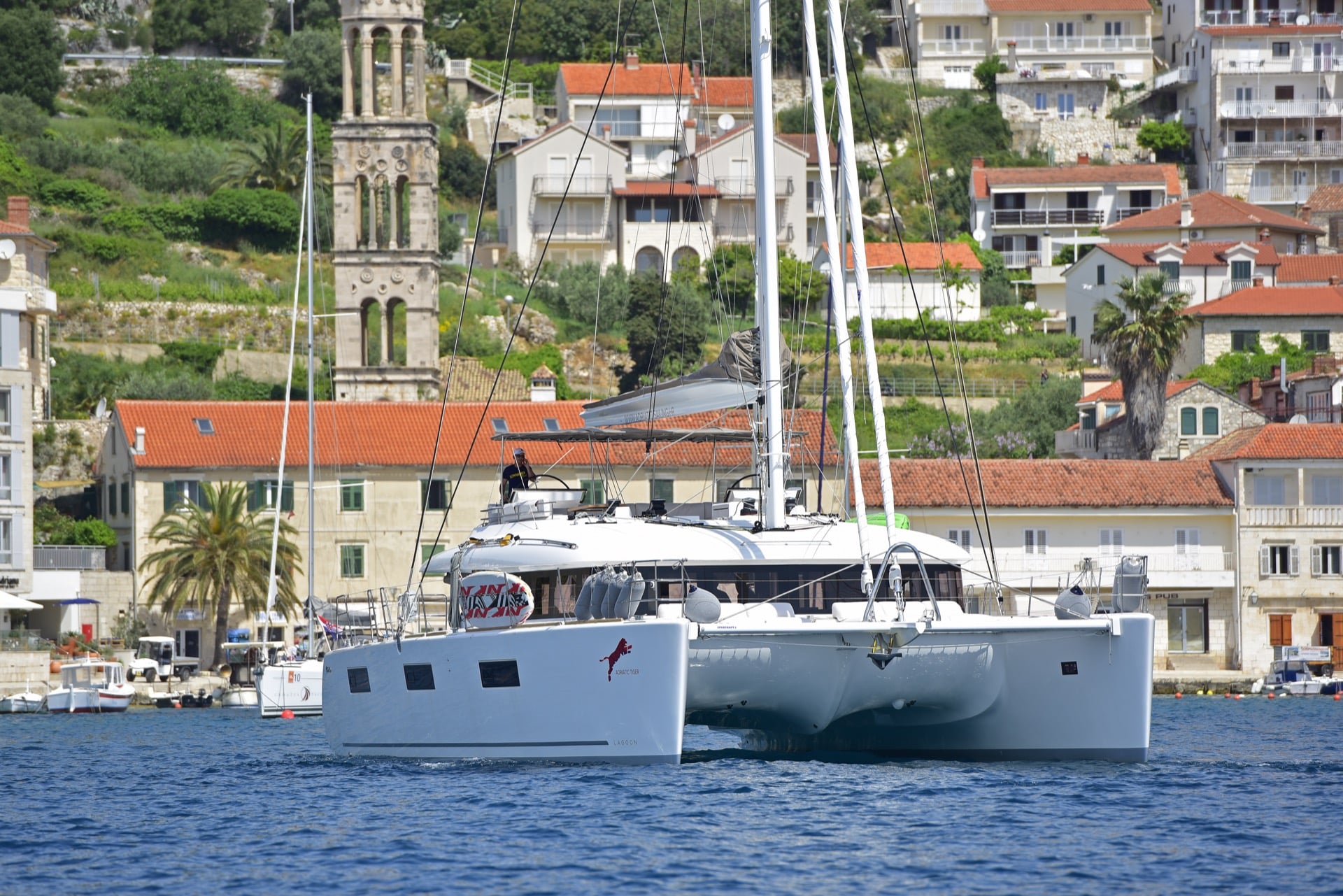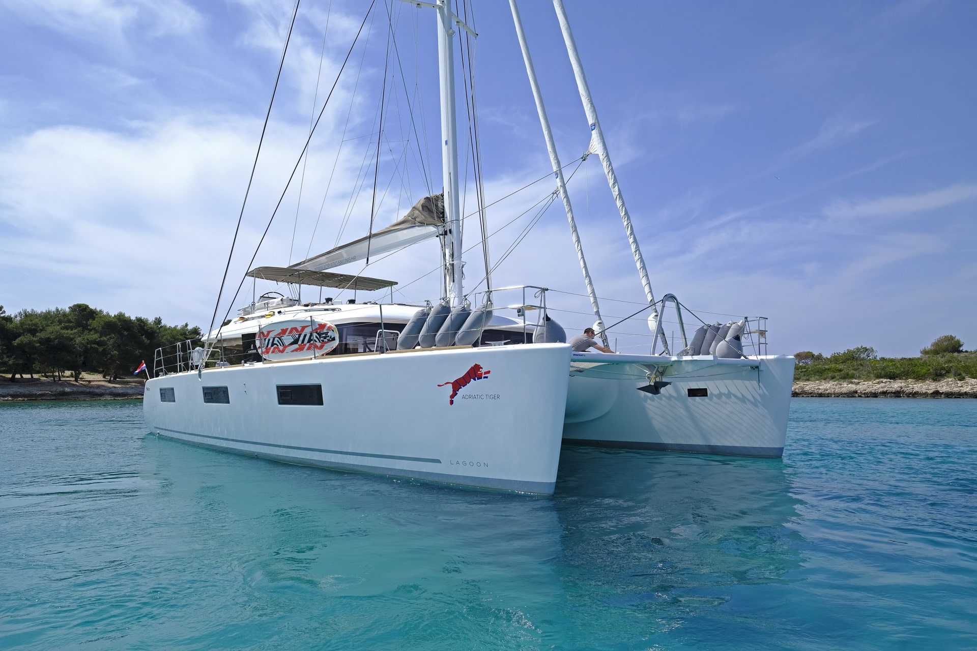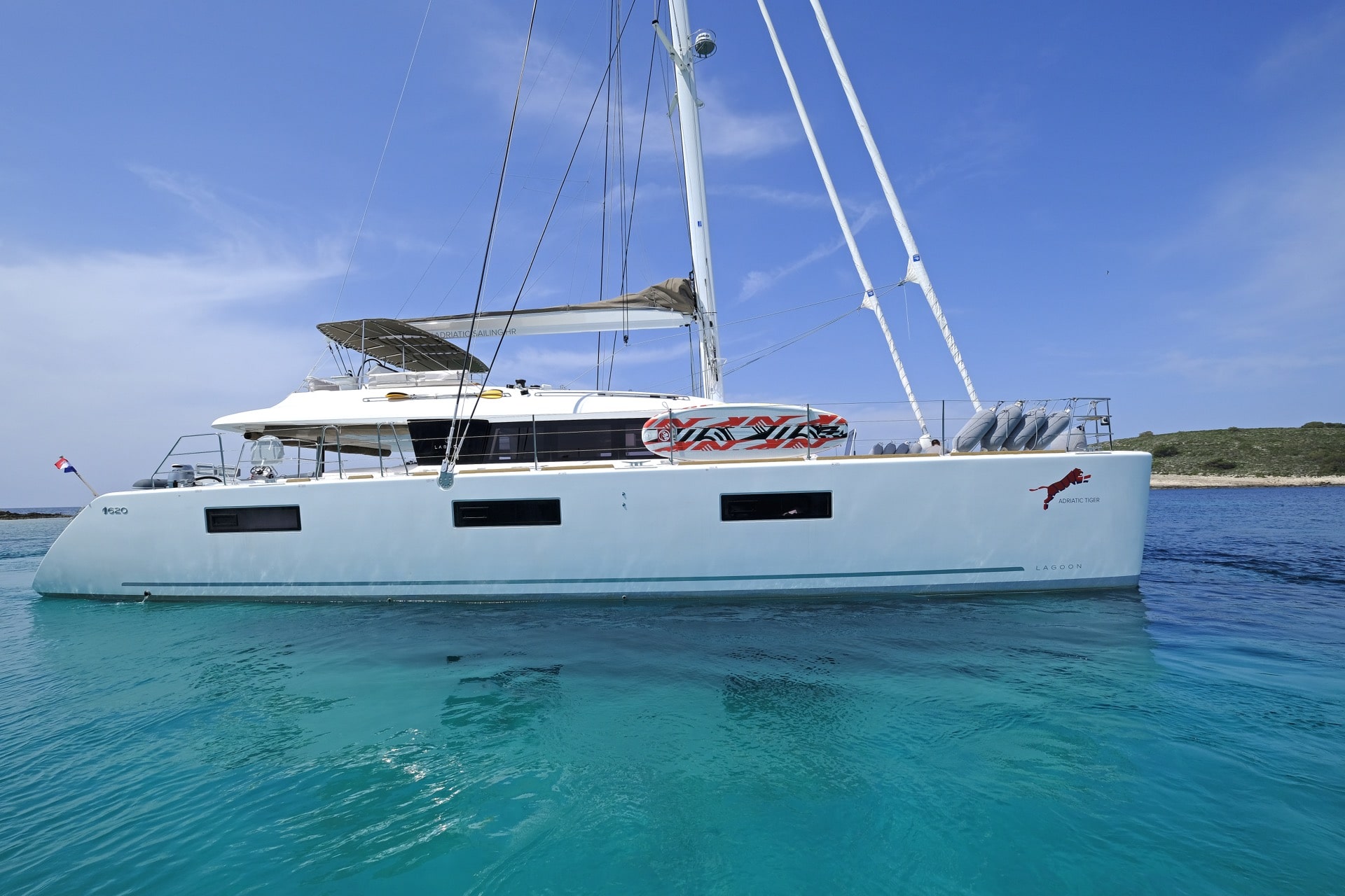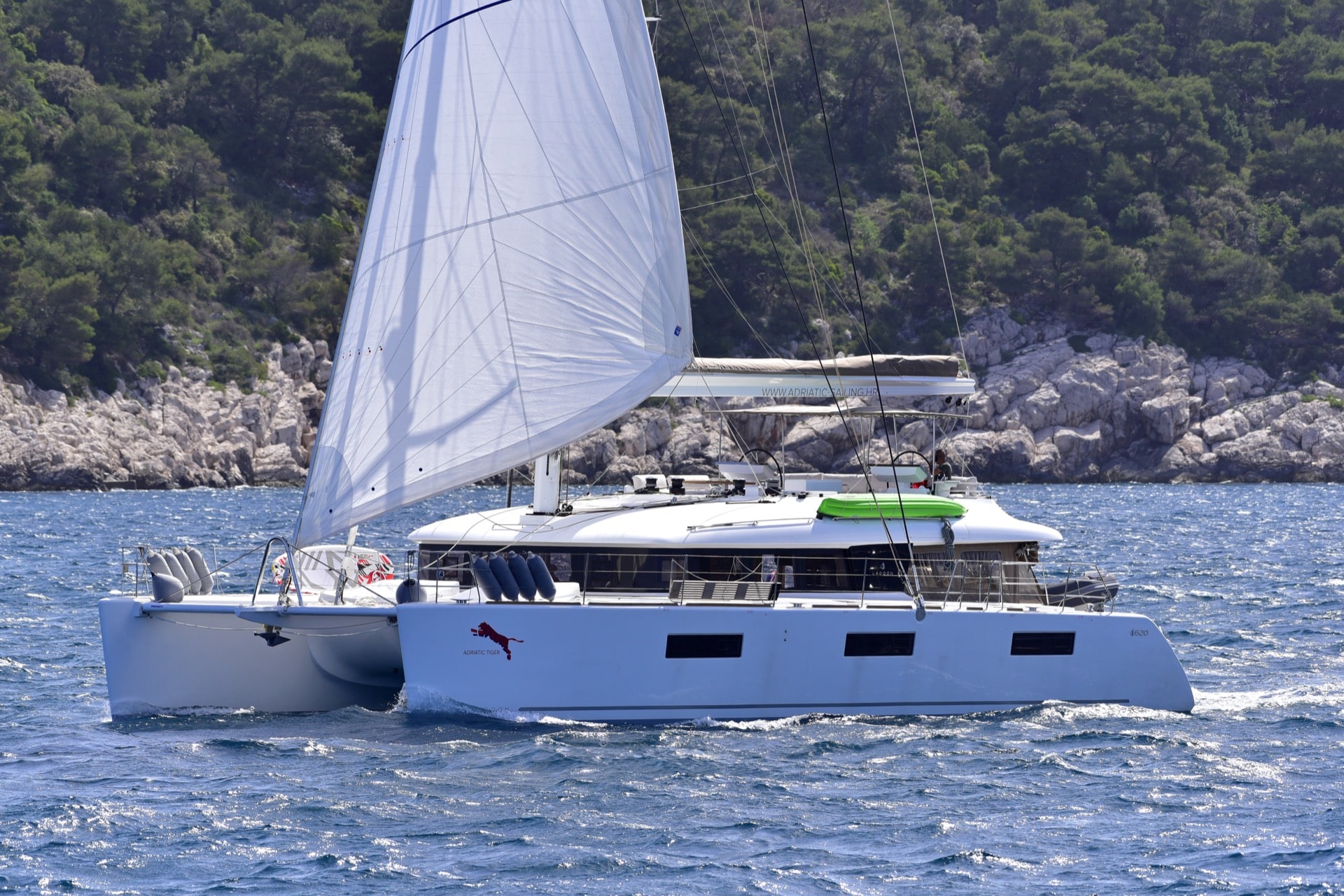 Exceptional living space, both above and below deck choice of 5 queen size bed en-suite cabins in which can sleep up to 10 guests. Crew has their separate quarters This powerful deep-water catamaran combines the outstanding comfort of a luxurious houseboat with excellent performance, both under sail and engine power. Lagoon 620, available for charter in Croatia, has 5 queen size berth cabins (sleeps up to 10 guests), all en-suite, plus separate cabins for three professional crew members.