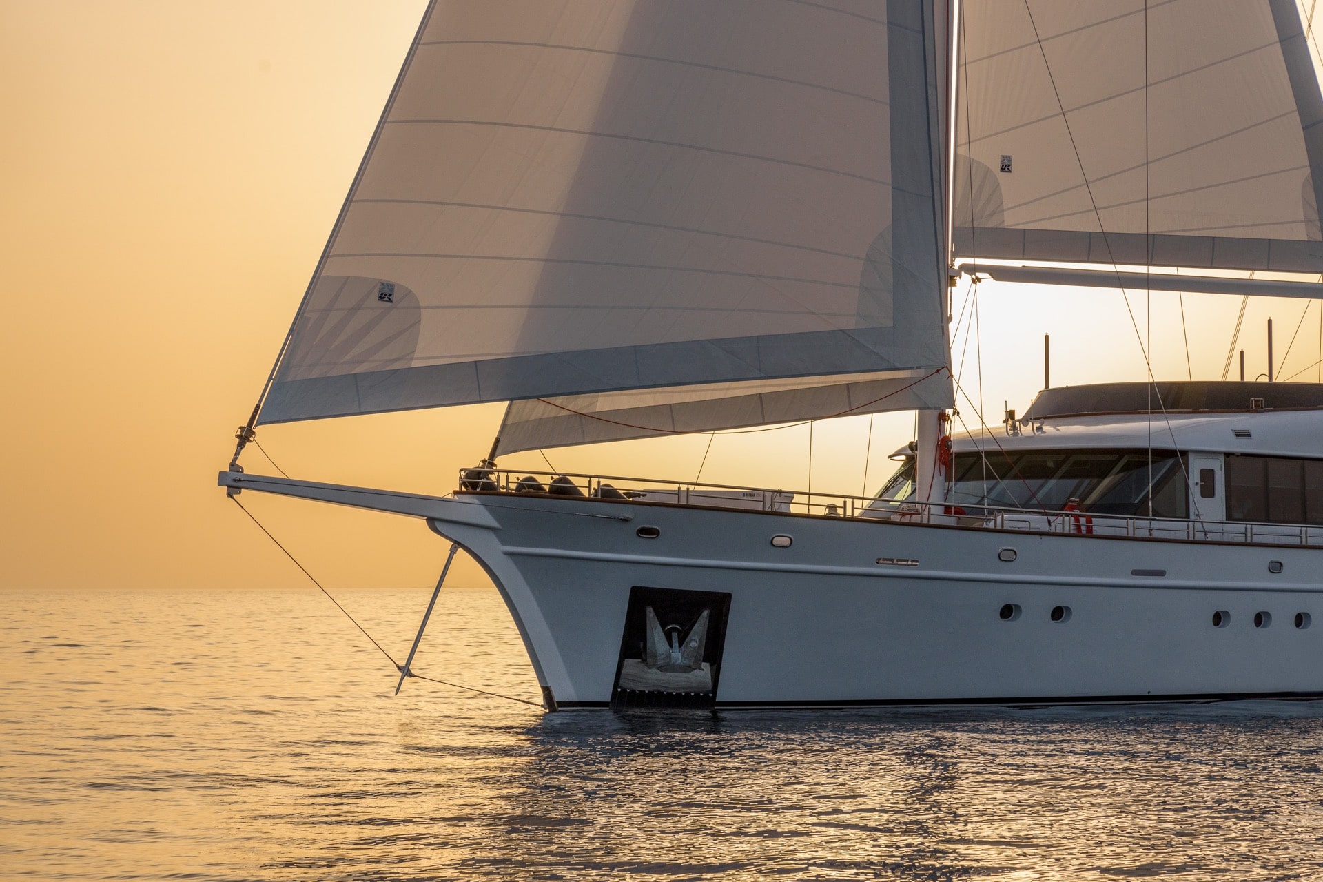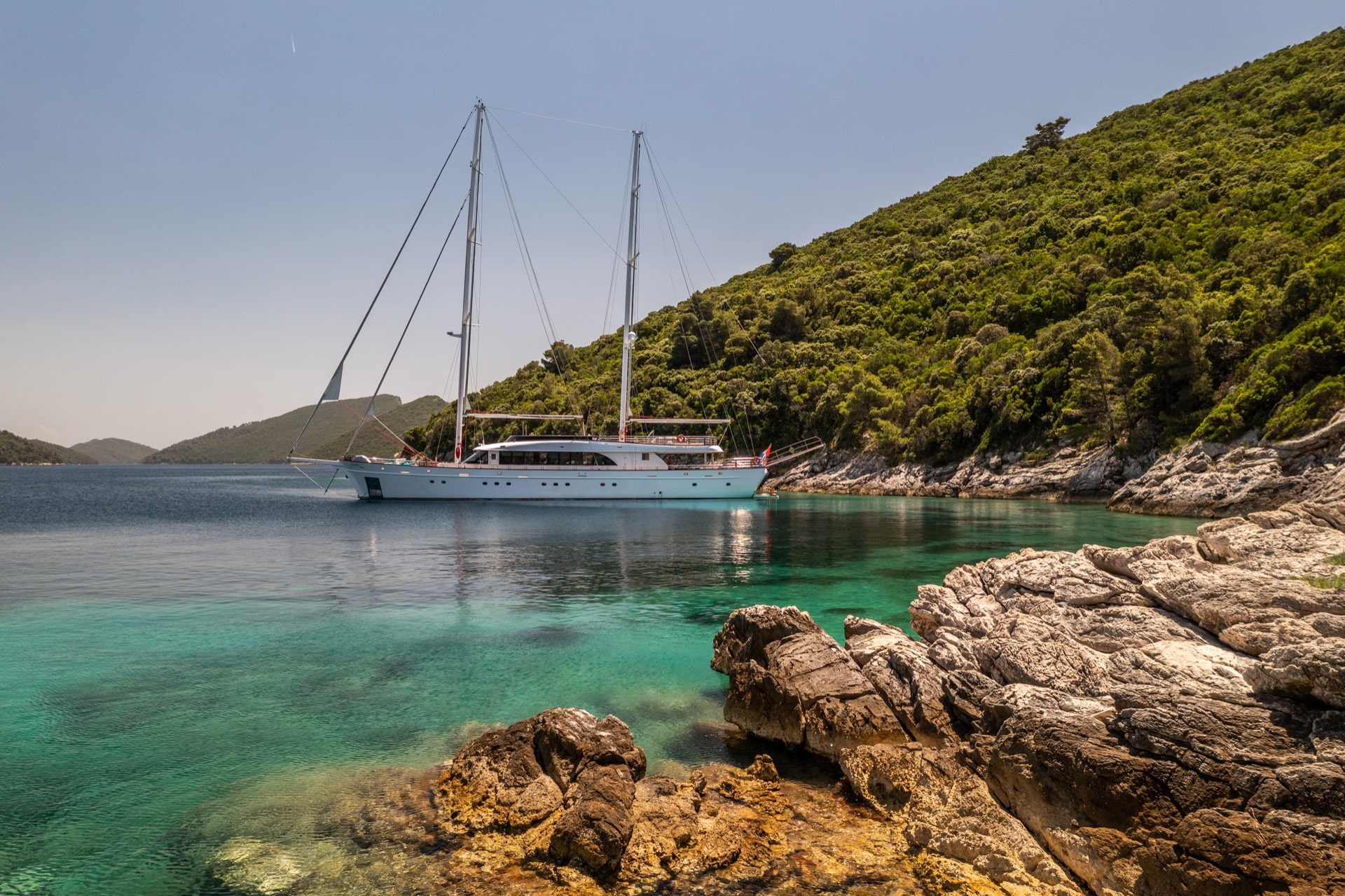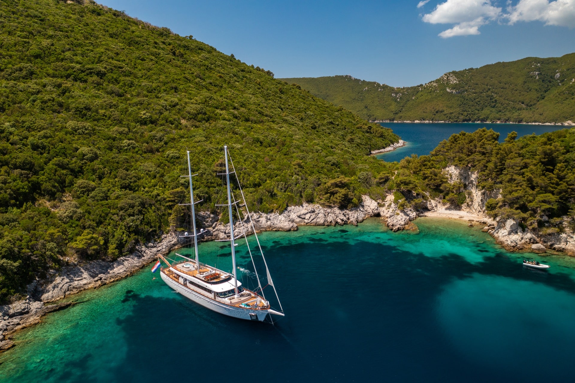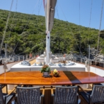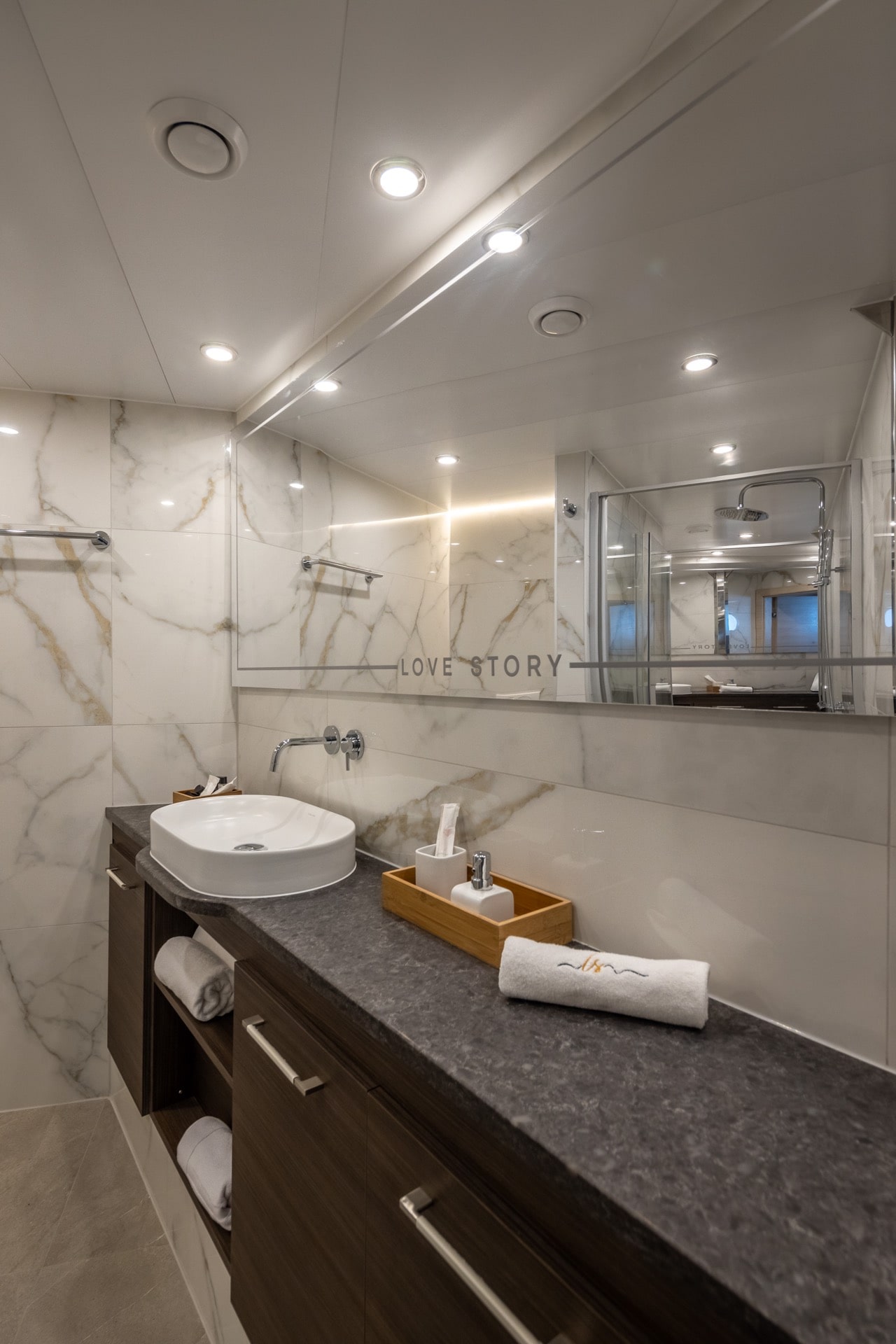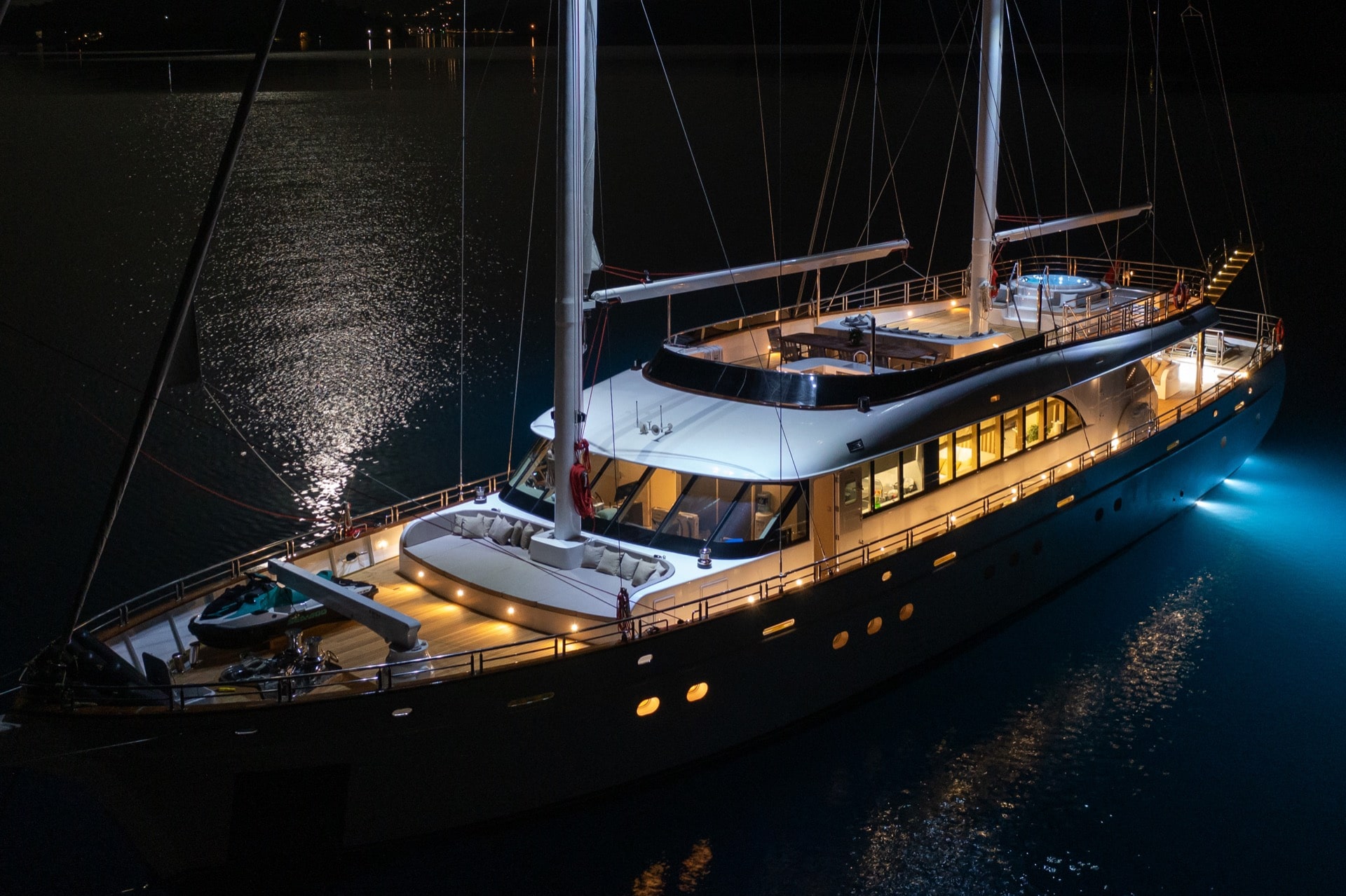LOVE STORY is a new luxury sailing yacht, the third in line of boats owned by the Trgo family out of Sumpetar, Jesenice they are proud and excited to present this 6 cabin sailing beauty. With two of these cabins being spacious master cabins over 25 m2 in size, and two triple and two double cabins, Love Story can accommodate 12(+2) pax. Within 43.25 m length over all, Love Story combines modern and luxury interior with a spacious and functional exterior where everyone can find their own place to relax and enjoy the peace and beauty of the Adriatic in its fullness. With a lot of cushioned areas on every corner, everyone can find a favorite spot to enjoy their first morning coffee or cocktail in the sunset. Beautiful dining area on the flybridge will provide you with a unique gastronomy experience while enjoying stunning views.