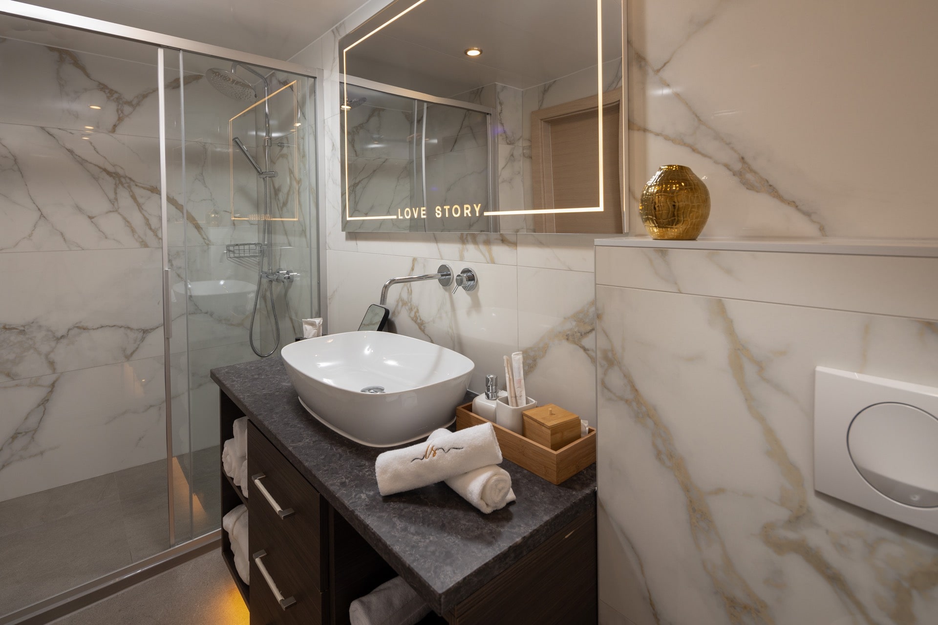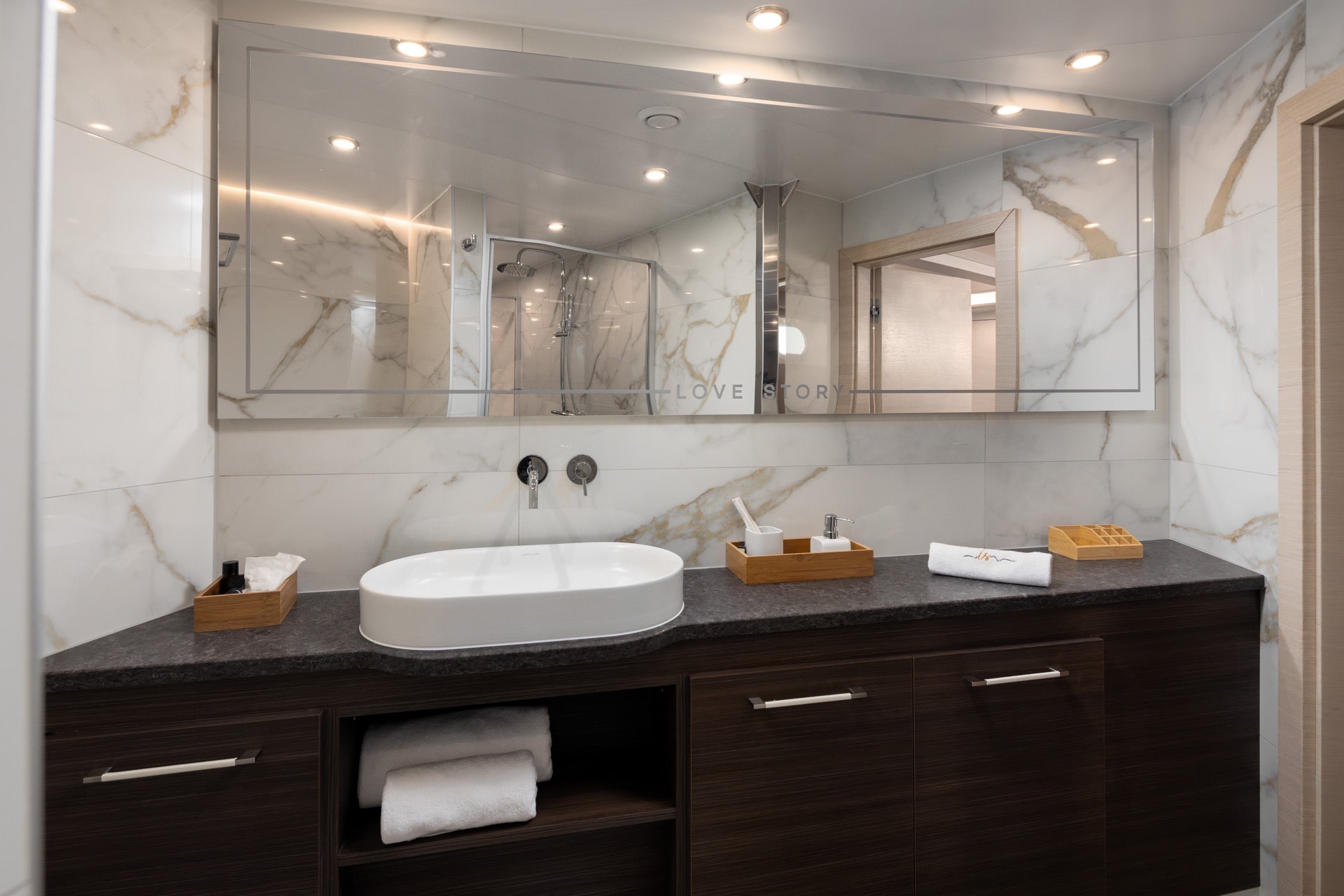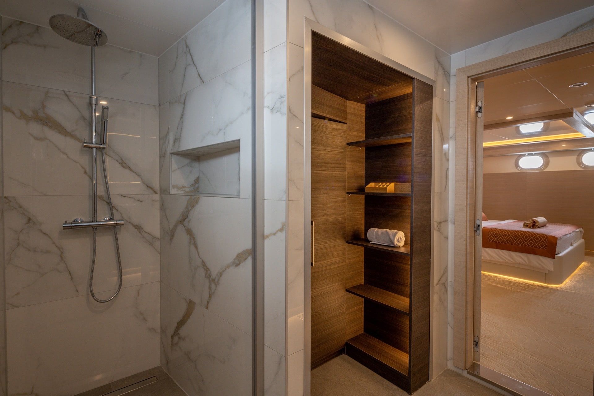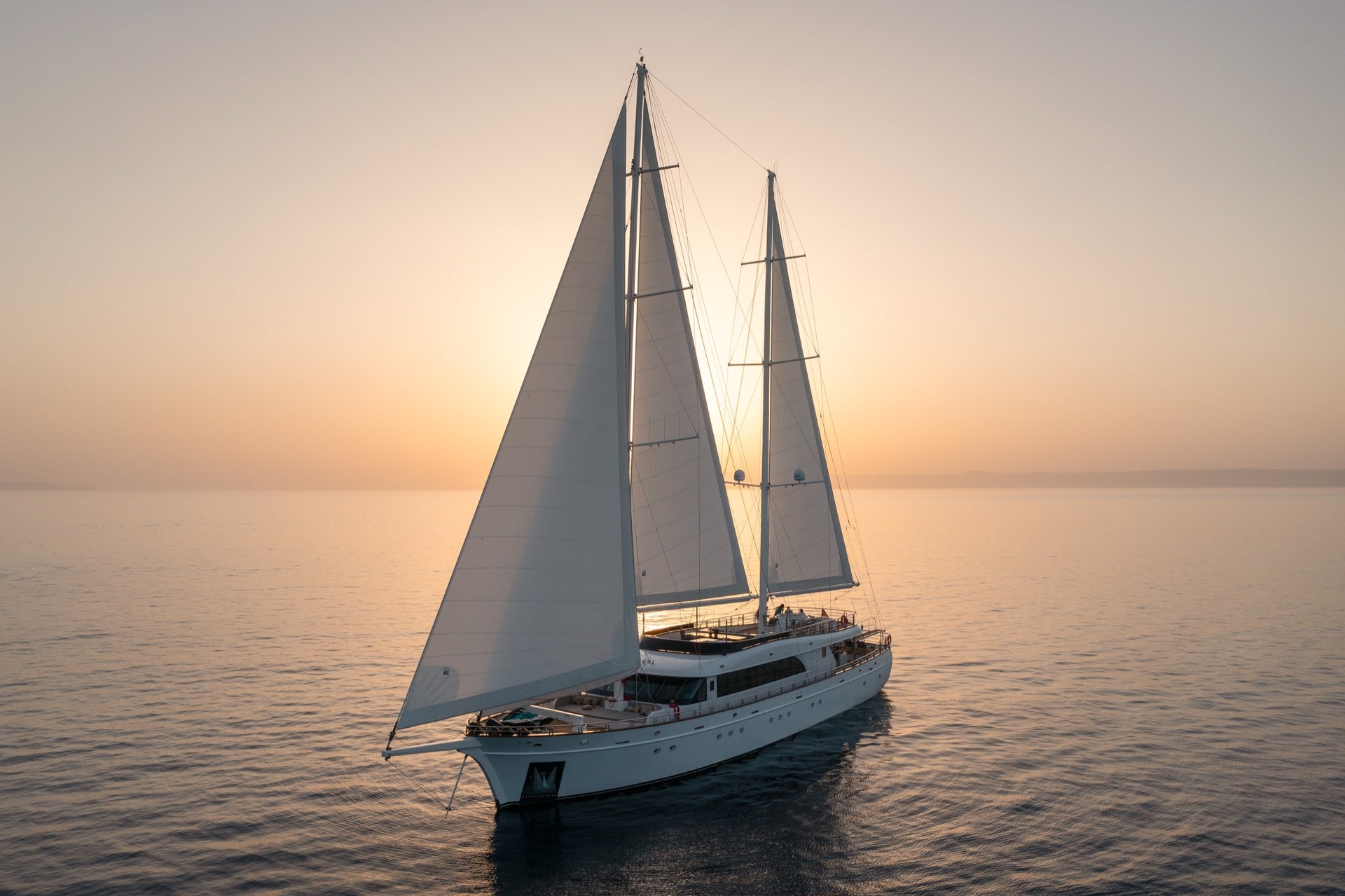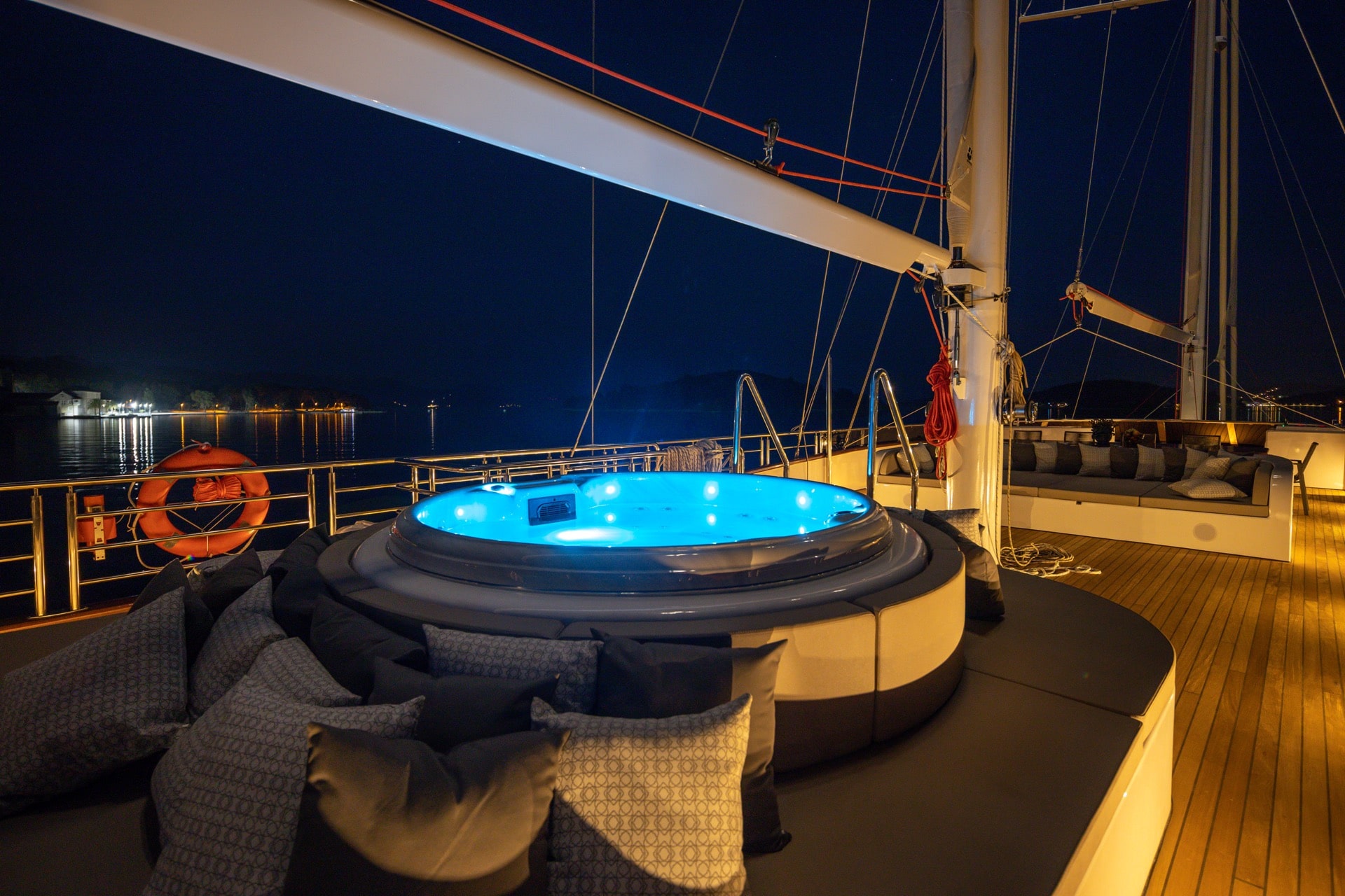 LOVE STORY is a new luxury sailing yacht, the third in line of boats owned by the Trgo family out of Sumpetar, Jesenice they are proud and excited to present this 6 cabin sailing beauty. With two of these cabins being spacious master cabins over 25 m2 in size, and two triple and two double cabins, Love Story can accommodate 12(+2) pax. Within 43.25 m length over all, Love Story combines modern and luxury interior with a spacious and functional exterior where everyone can find their own place to relax and enjoy the peace and beauty of the Adriatic in its fullness. With a lot of cushioned areas on every corner, everyone can find a favorite spot to enjoy their first morning coffee or cocktail in the sunset. Beautiful dining area on the flybridge will provide you with a unique gastronomy experience while enjoying stunning views.