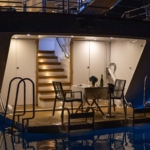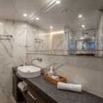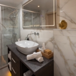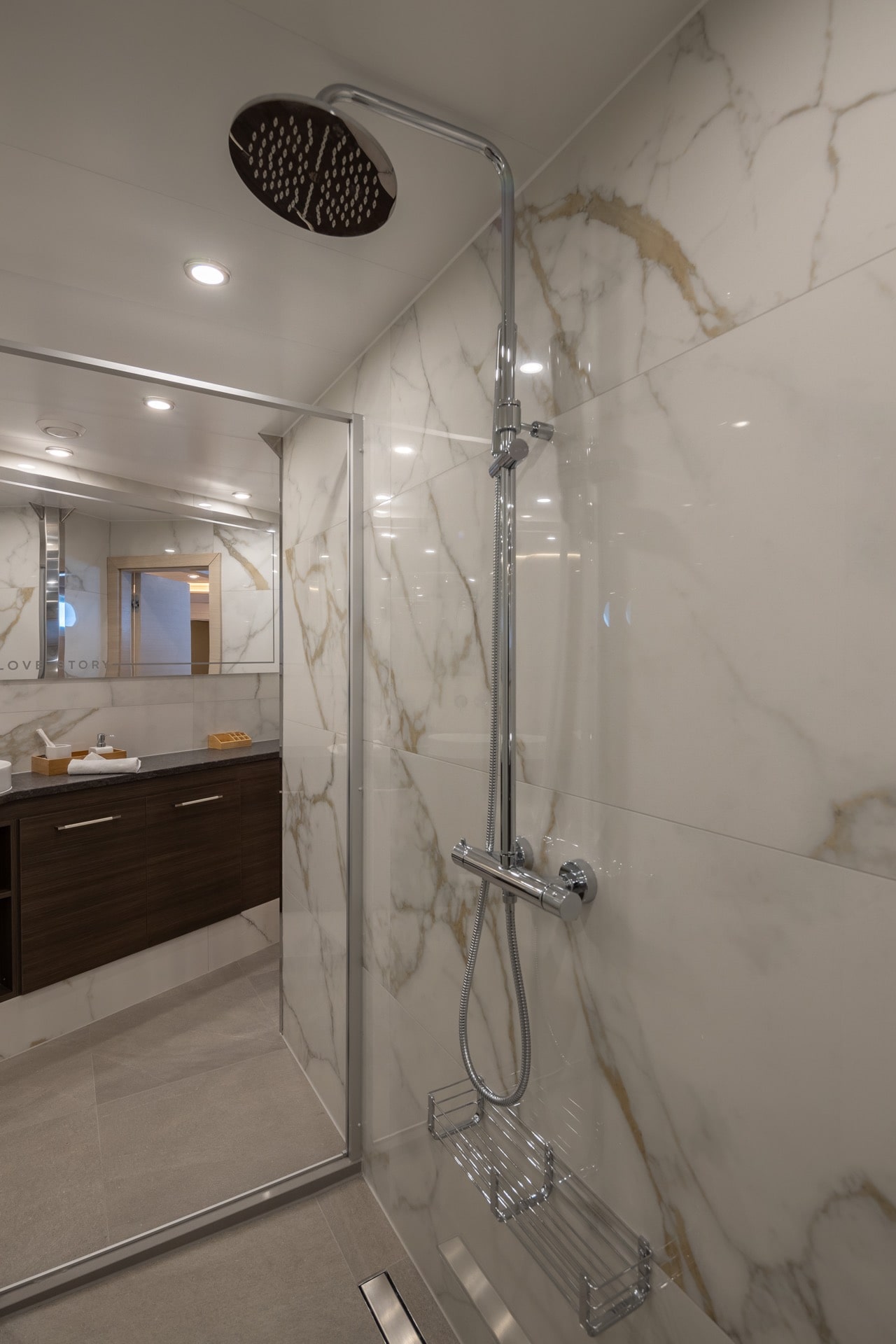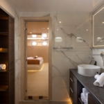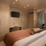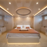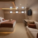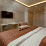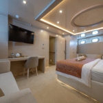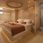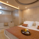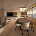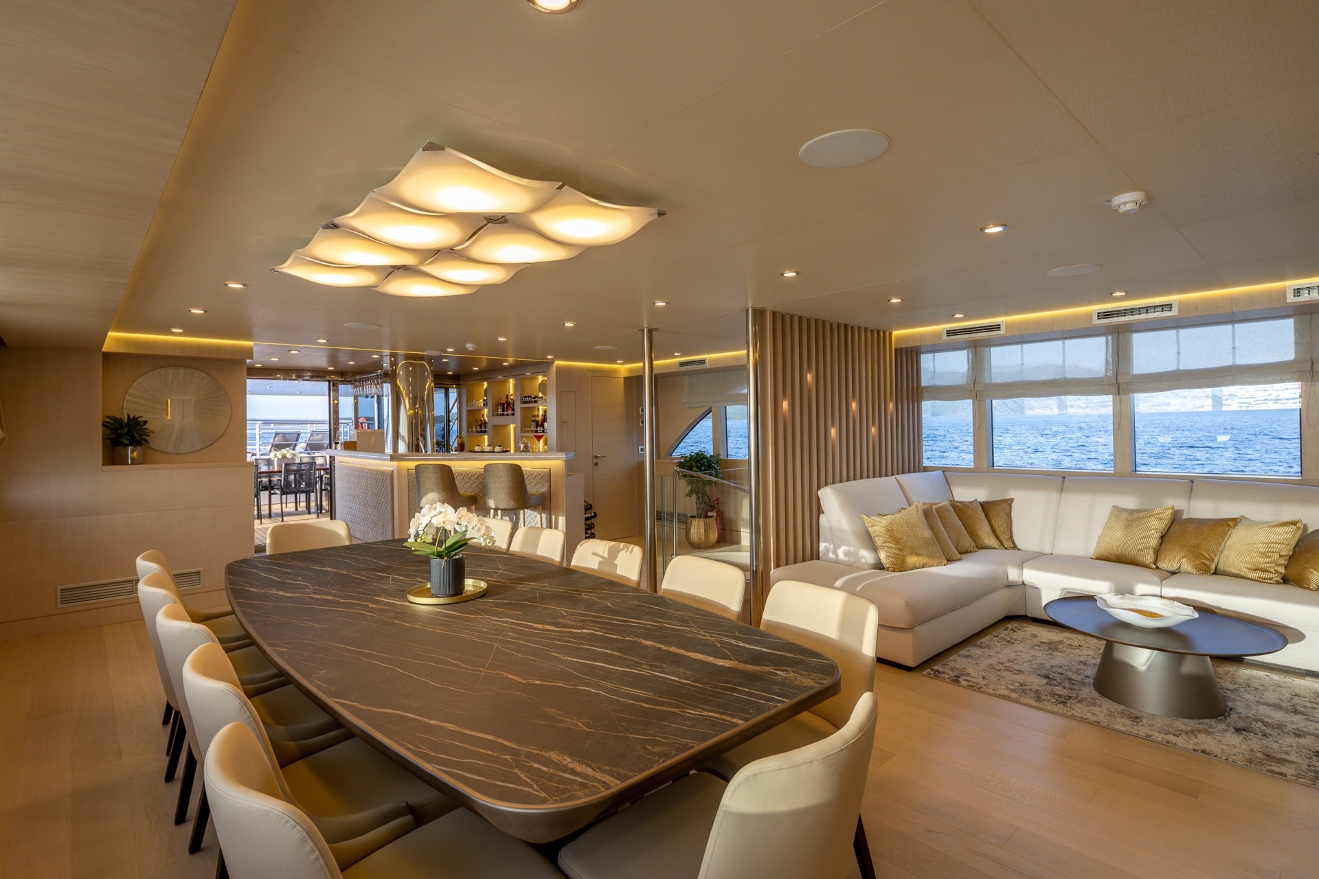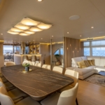 • The Main Saloon combines a dining area with an elegant bar and lounge seating area with TV, DVD, USB.