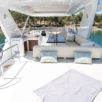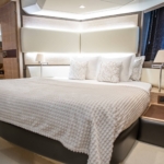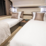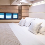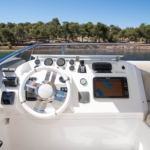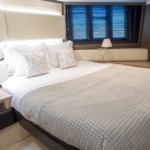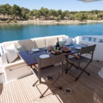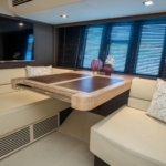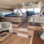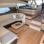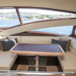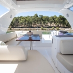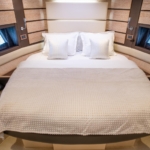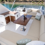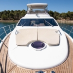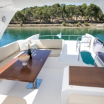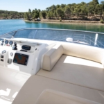 Impressive look and additional space in lowerdeck and bow cabine. Full height windows in salon for convertible dinette/lounge zone. New 6 sqm (on 60-feet yacht) fore deck lounge convertible solution with bow bimini top with carbon fiber bimini poles. Extended flybridge becomes even more longer in new generation Azimut flybridge yachts. Flybridge supports have additional feature of privacy curtain with electric system and remote control.