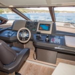 Interceptor technology provides a smooth, precise auto mode that automatically takes care of all trim adjustments. It delivers trouble-free handling and a system without corrosion or leaking oil. At the helm, the electronic power steering system gives you a similar sensation to driving a top of the range car. The pilot can configure the responsiveness of the helm by regulating wheel turns and steering effort according to speed. The electronic power steering system also offers the additional benefit of eliminating the hydraulic piping between the helm station and the rudder compartment.