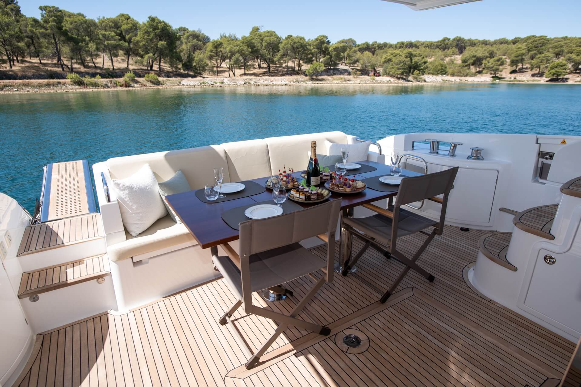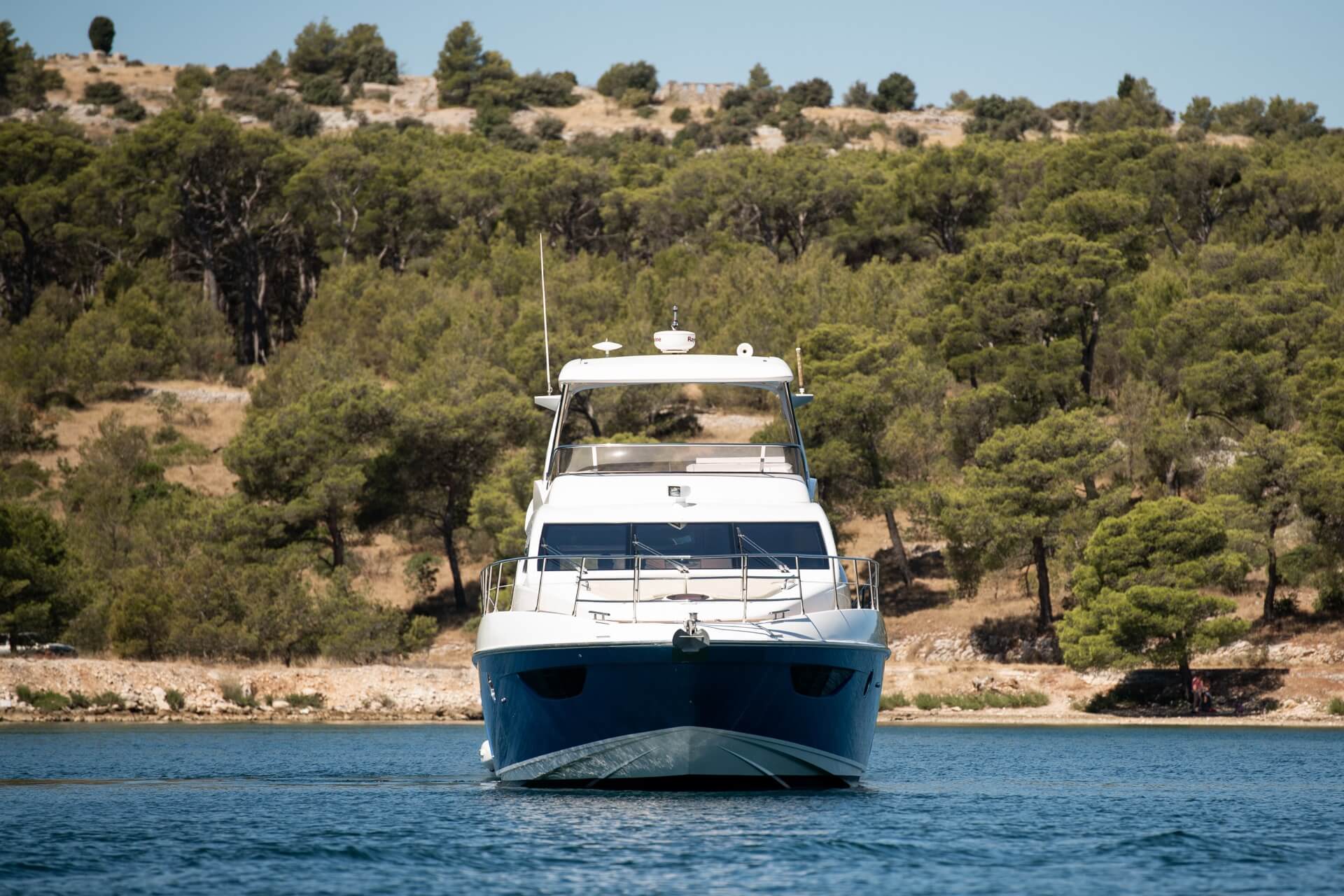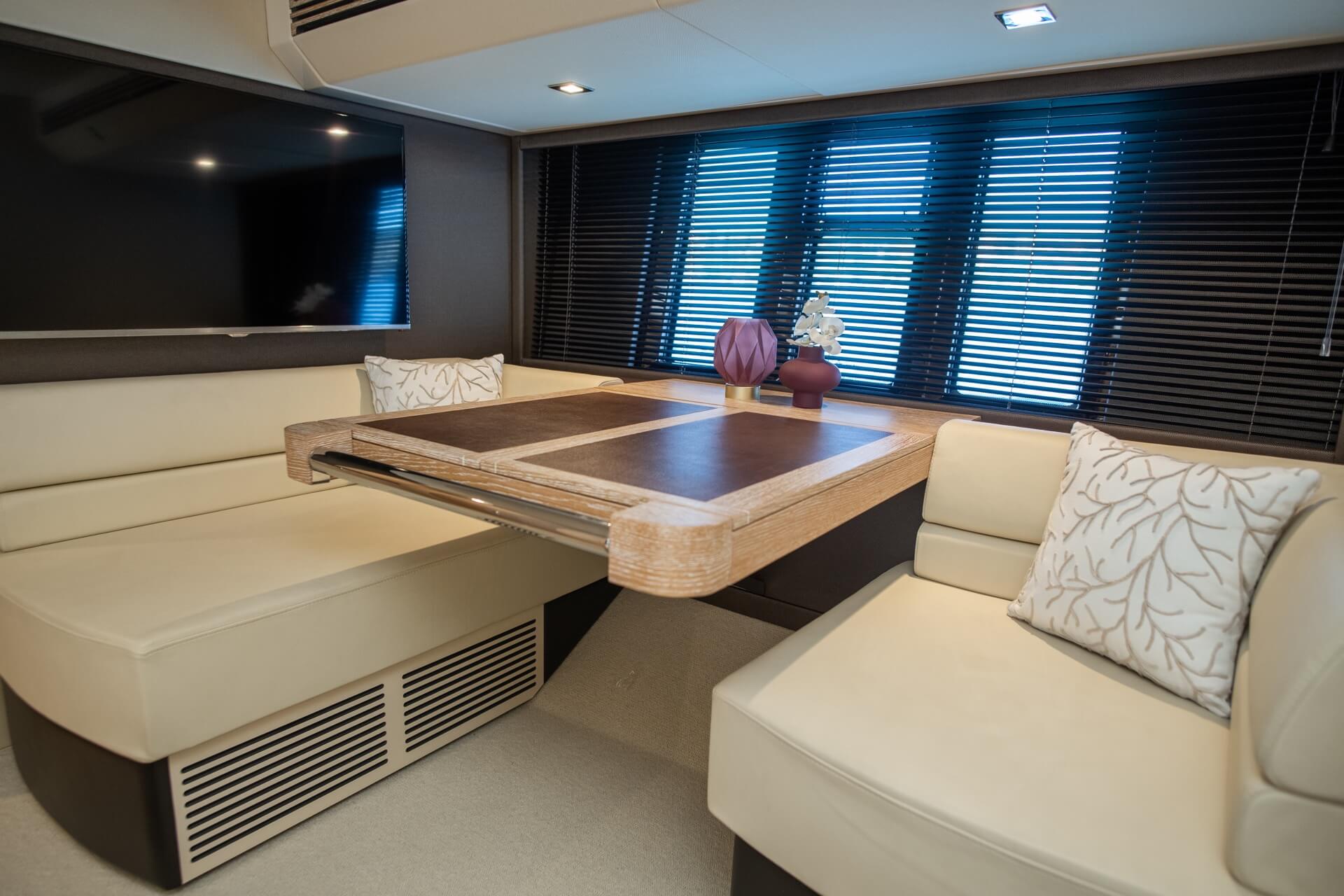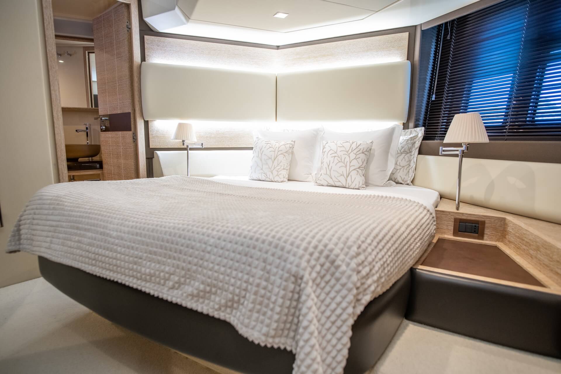 Impressive look and additional space in lowerdeck and bow cabine. Full height windows in salon for convertible dinette/lounge zone. New 6 sqm (on 60-feet yacht) fore deck lounge convertible solution with bow bimini top with carbon fiber bimini poles. Extended flybridge becomes even more longer in new generation Azimut flybridge yachts. Flybridge supports have additional feature of privacy curtain with electric system and remote control.