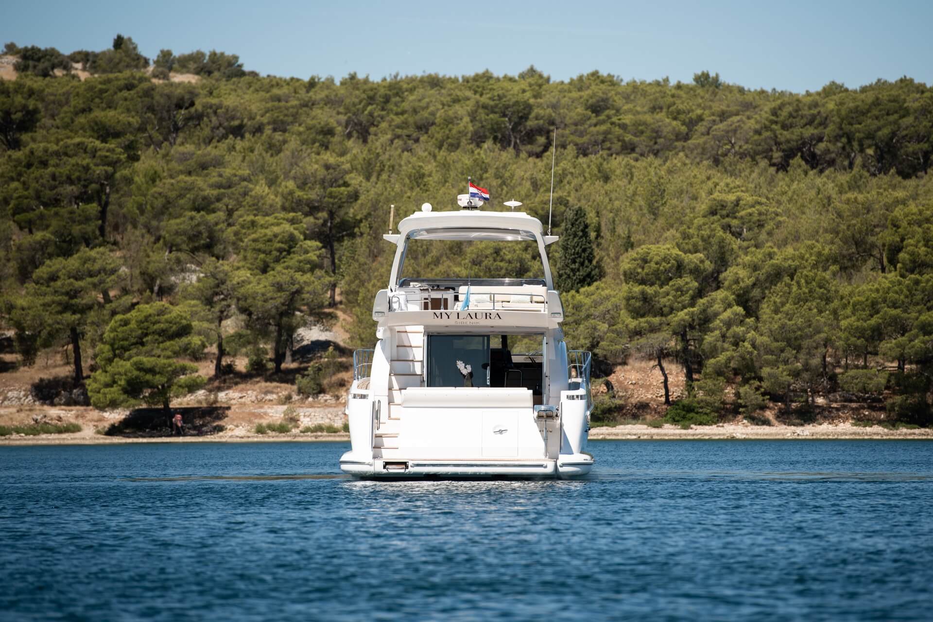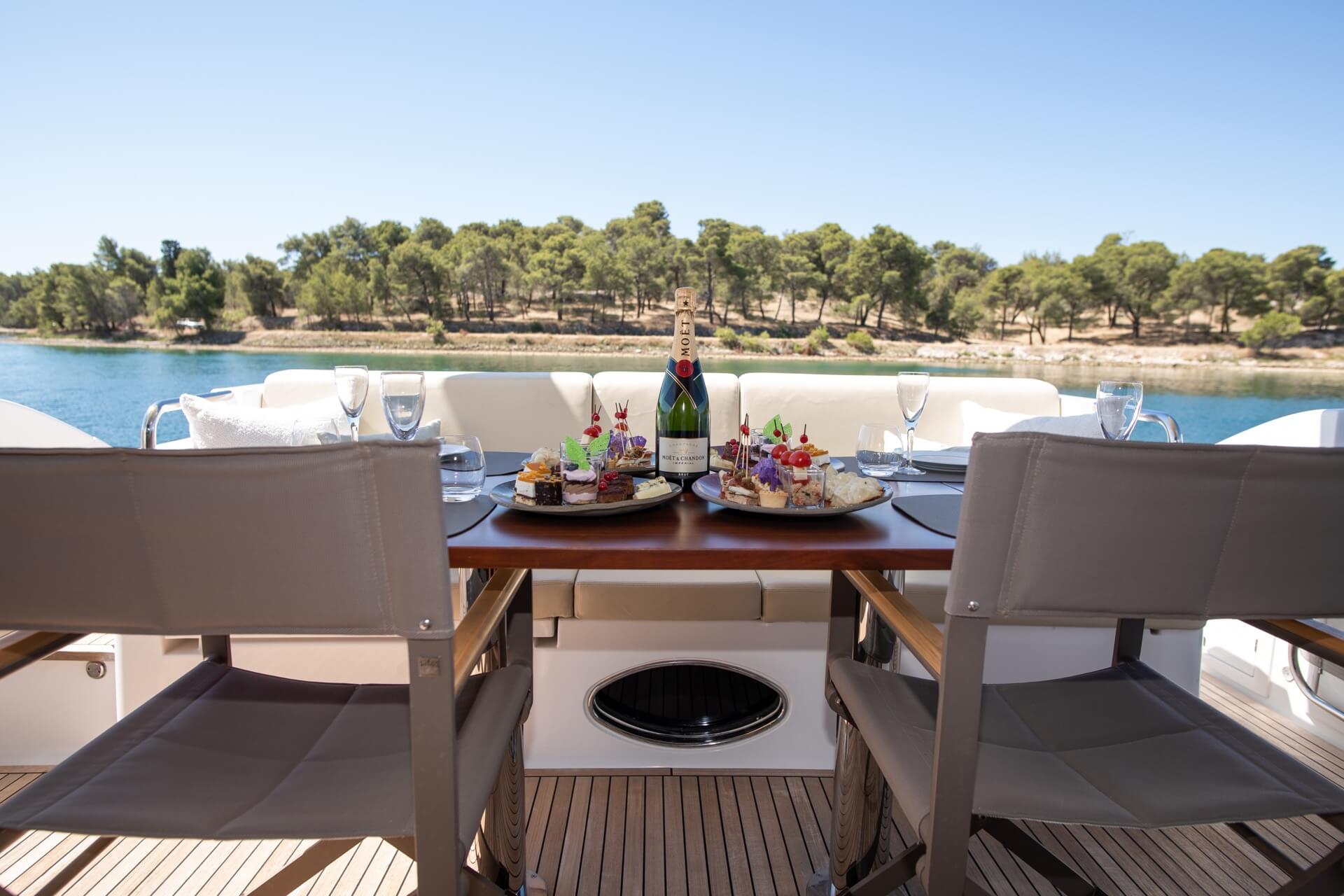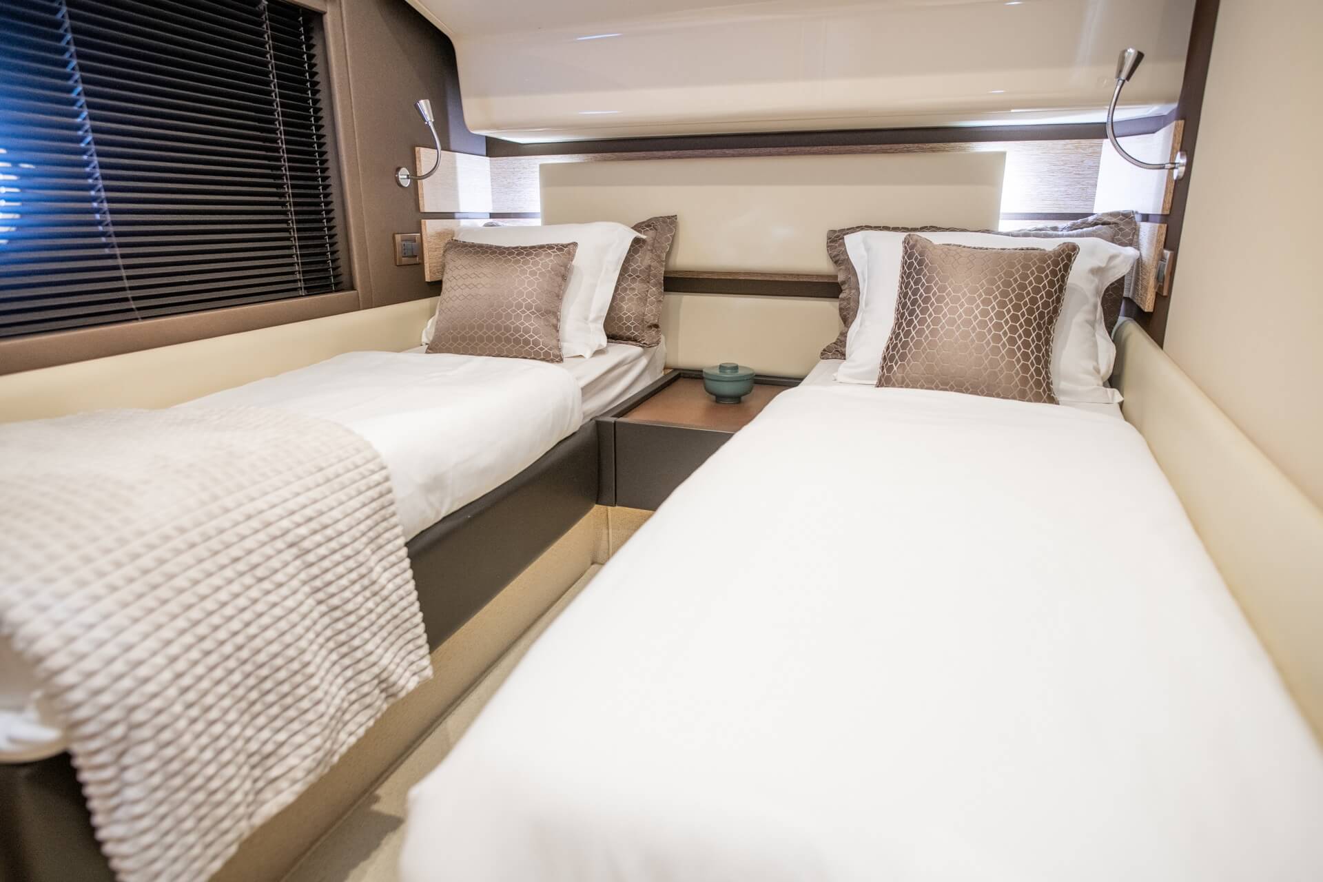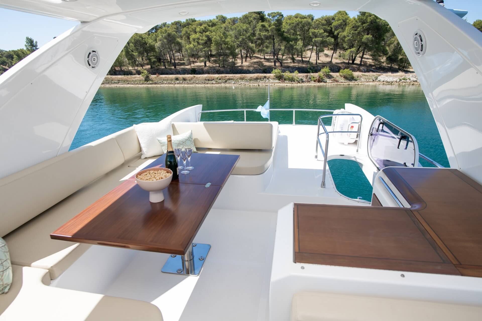 Impressive look and additional space in lowerdeck and bow cabine. Full height windows in salon for convertible dinette/lounge zone. New 6 sqm (on 60-feet yacht) fore deck lounge convertible solution with bow bimini top with carbon fiber bimini poles. Extended flybridge becomes even more longer in new generation Azimut flybridge yachts. Flybridge supports have additional feature of privacy curtain with electric system and remote control.