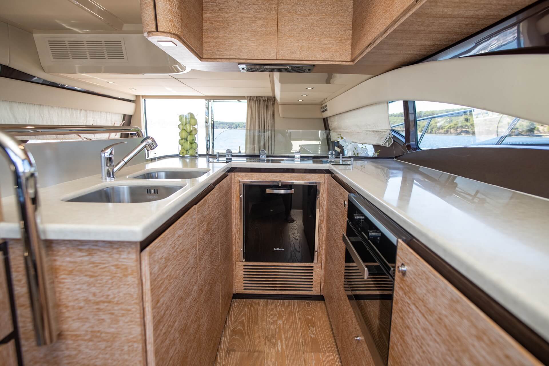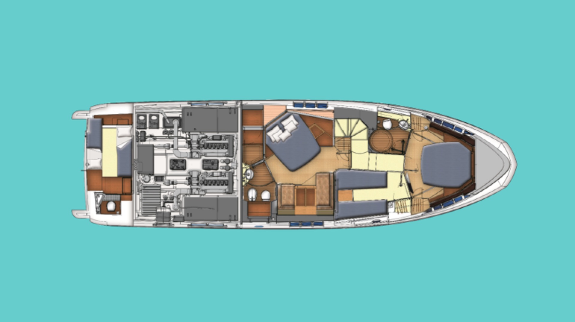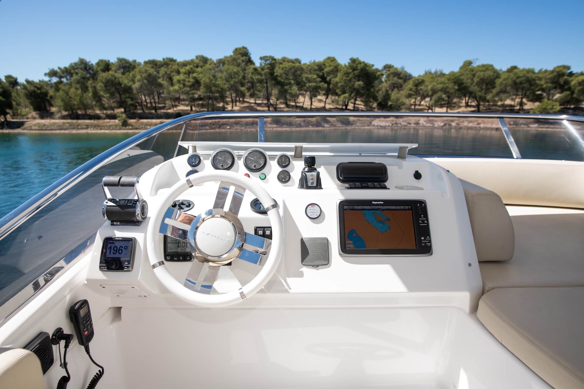 Interceptor technology provides a smooth, precise auto mode that automatically takes care of all trim adjustments. It delivers trouble-free handling and a system without corrosion or leaking oil. At the helm, the electronic power steering system gives you a similar sensation to driving a top of the range car. The pilot can configure the responsiveness of the helm by regulating wheel turns and steering effort according to speed. The electronic power steering system also offers the additional benefit of eliminating the hydraulic piping between the helm station and the rudder compartment.