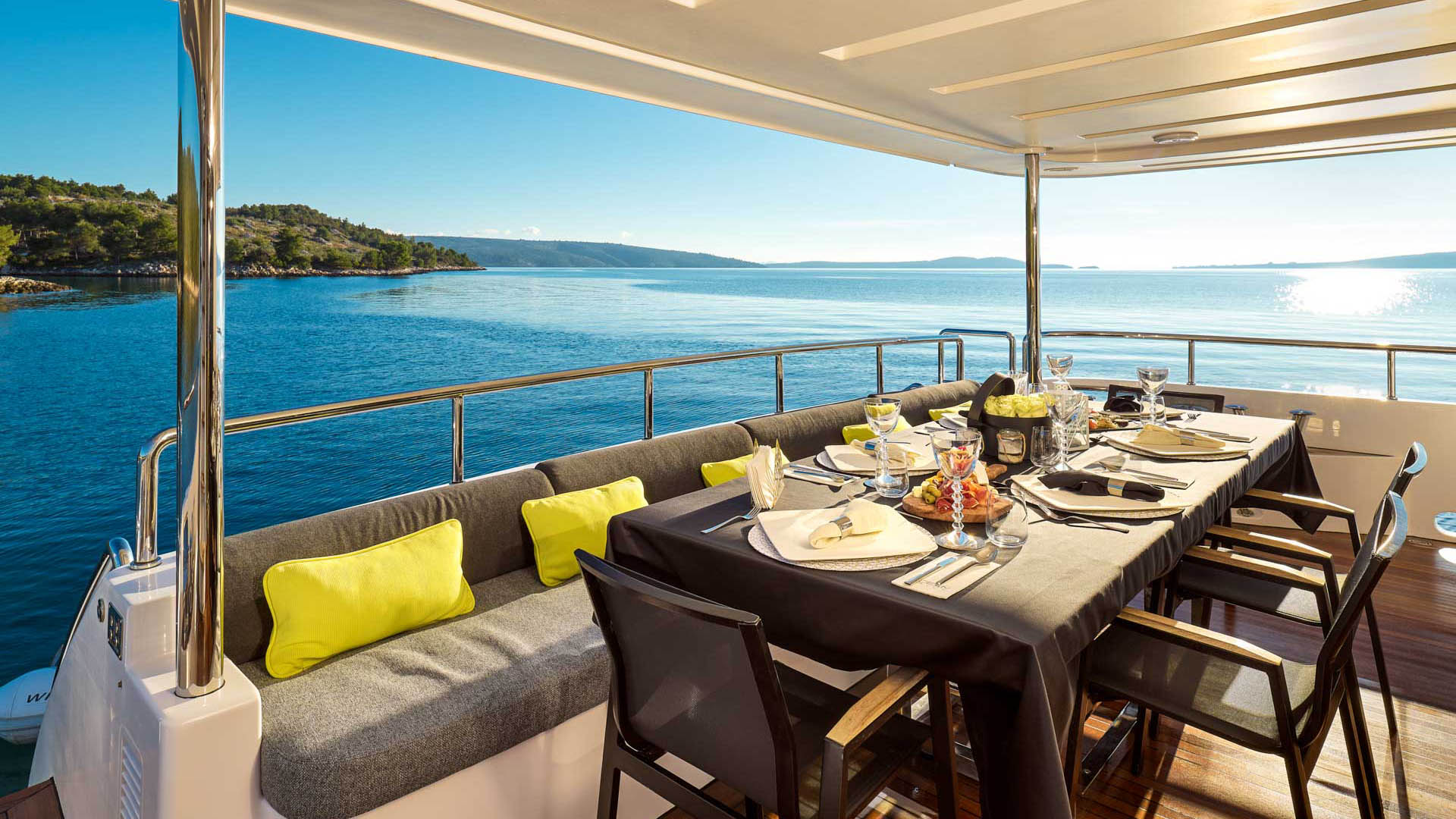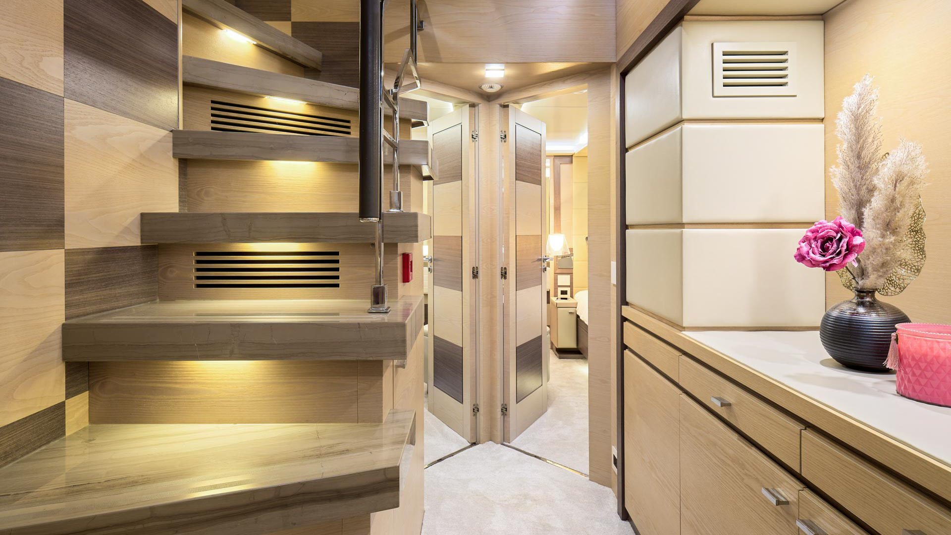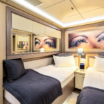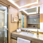 She offers 5 en suite cabins, including Master suite, two VIP cabins and two twin cabins. Located on the main deck, the Master suite offers sophisticated and relaxing atmosphere. Stabilisers at anchor and underway will ensure the comfort and smooth cruise.