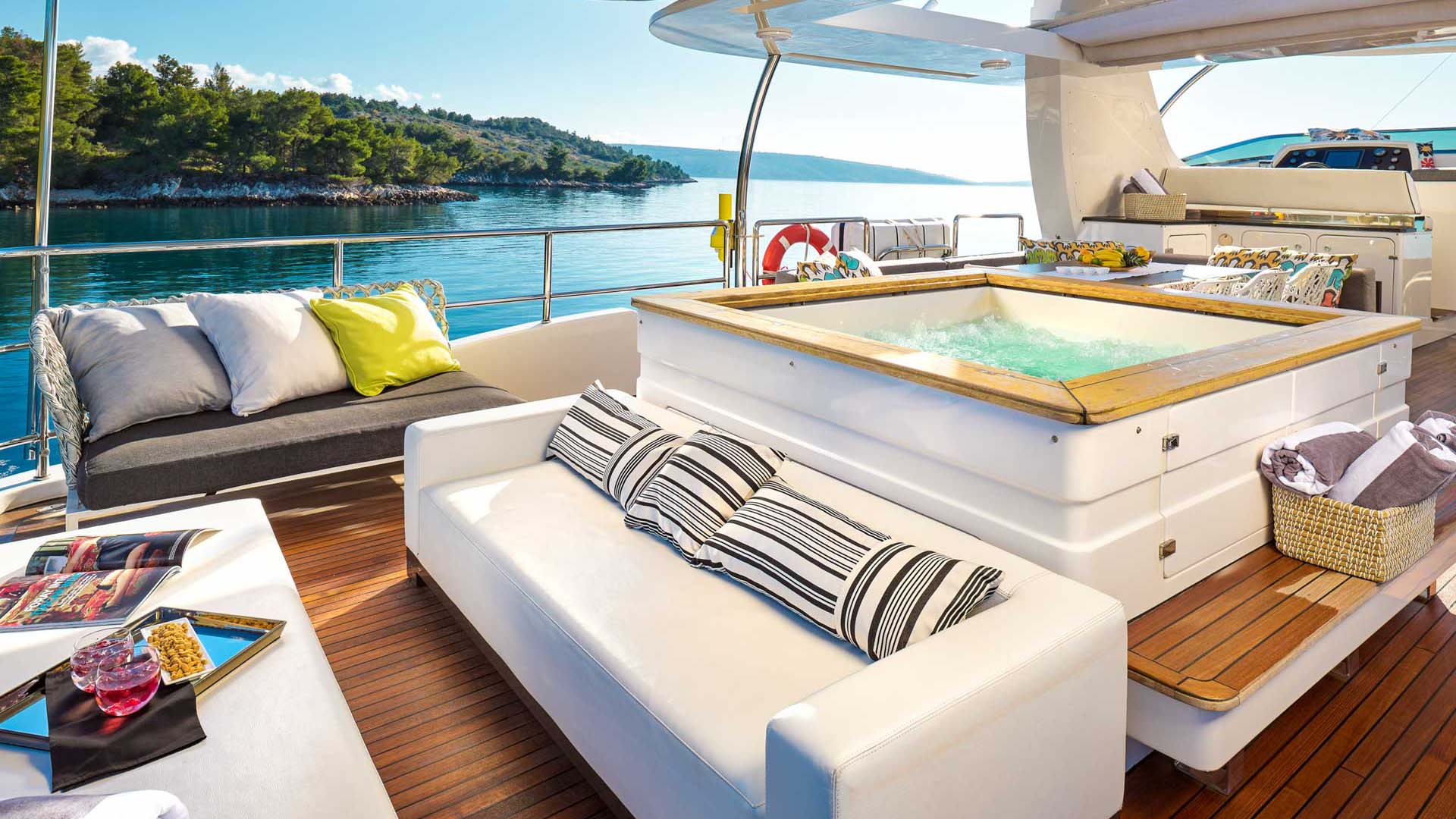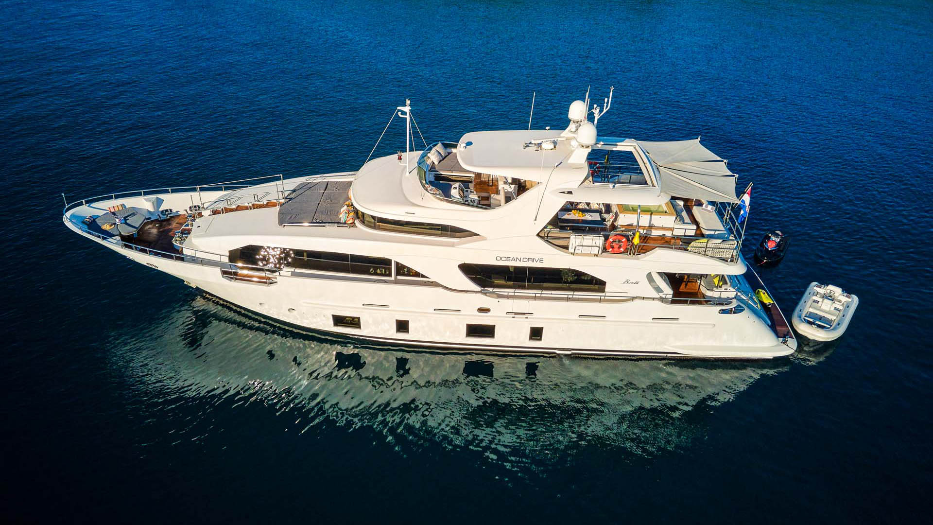 Ocean Drive motor yacht, built by the Italian shipyard Benetti, offers abundance of living space to ensure luxury cruising experience. Soak up the sun or enjoy the night skies at the beautiful flybridge equipped with Jacuzzi, bar and an area for al-fresco dining.