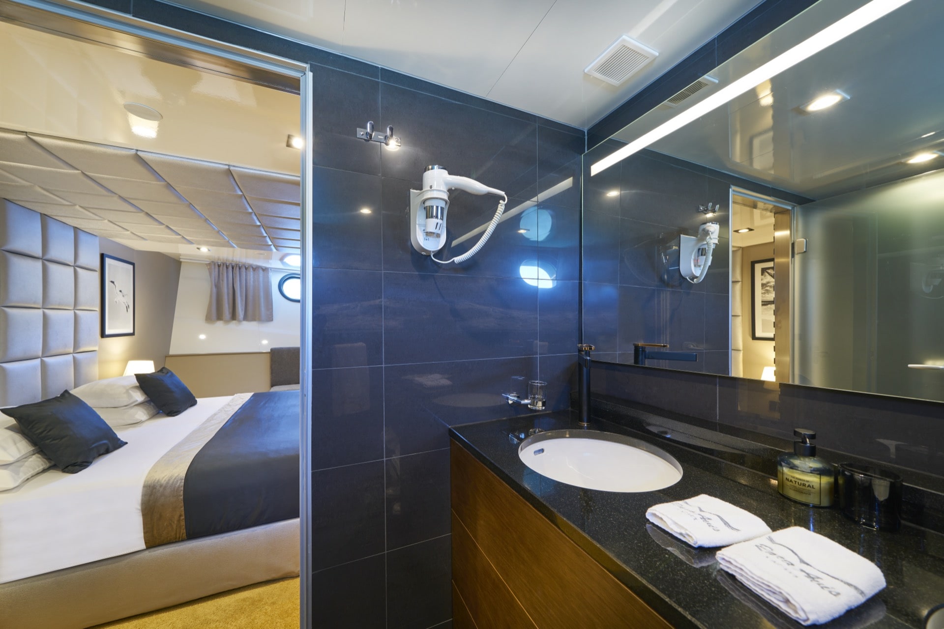 - Main Saloon combines a spacious and luxury dining area with an elegant bar and lounge seating area
