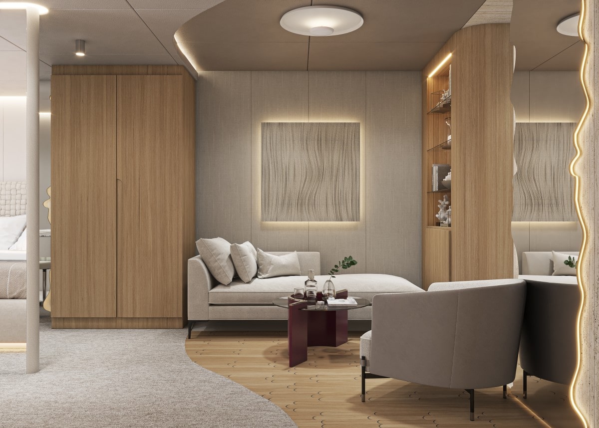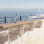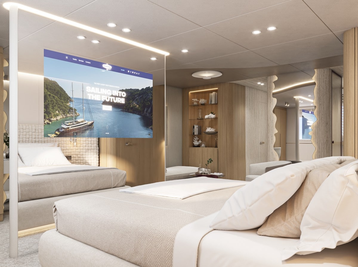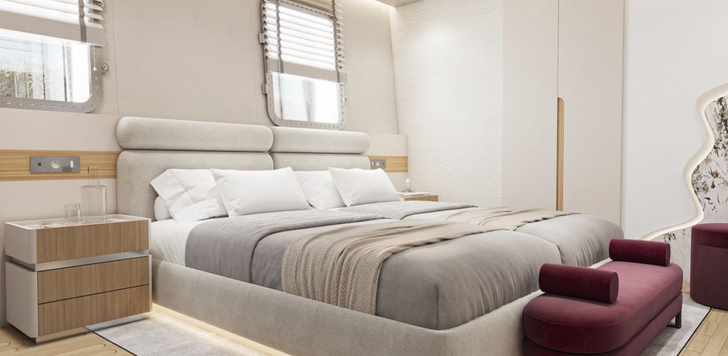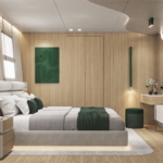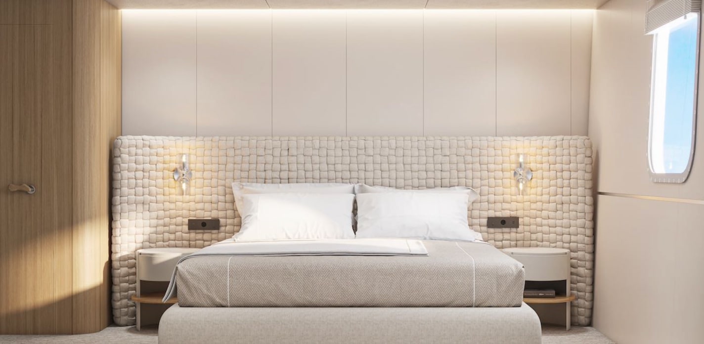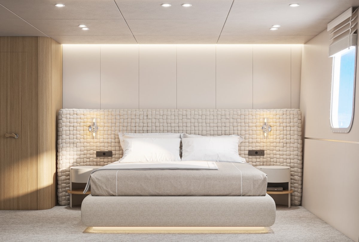 Outside speakers, Deck with dining area, Indoor dining, Minibar outside, Separate cabins for cews, Sun Mattresses, Ice maker, Summer tent, Coffee machine, Electric fridge, TowelsSafety equipment: