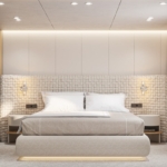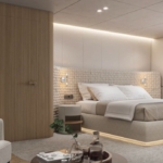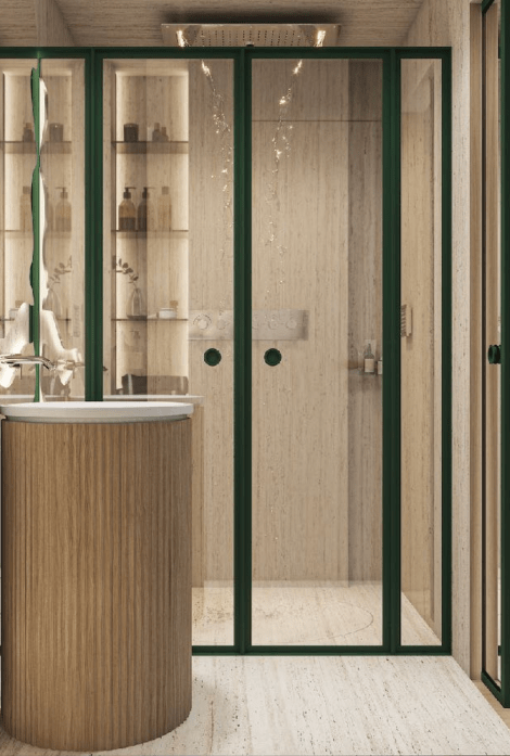 Outdoor, a vast sundeck features a jacuzzi for 8, huge sun loungers, a fire pit, a wet bar, a beach club, and a TV projector.
