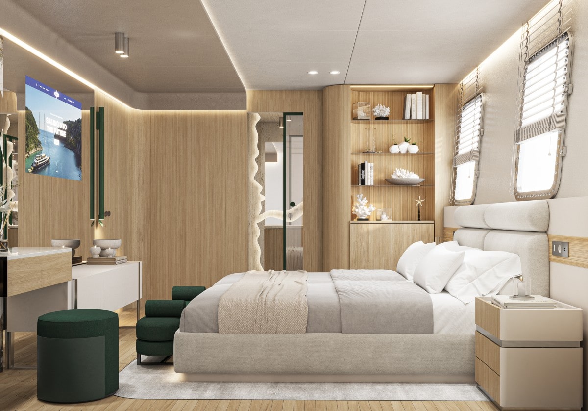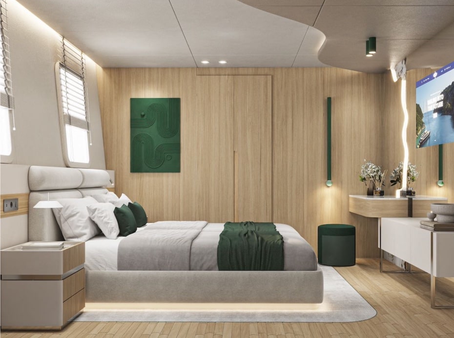 It has a variety of social areas, 6 fully-equipped cabins, and indoor and outdoor dining – including the al fresco for 12 persons on the sun deck.