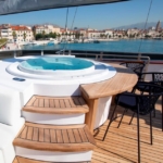 Outside, a sundeck features sun beds, a vast lounge & dining area, a jacuzzi, and a grill bar. On the other hand, the main deck offers a more intimate lounge and dining area, ideal for soaking up the sun in a relaxed ambiance.