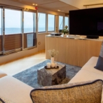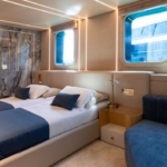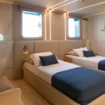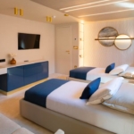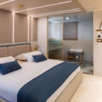 Impeccably designed 6 cabins with en suite marble bathrooms, equipped with bathtub and walk-in wardrobes come with the latest technology – flat-screen TVs, sound system, Wi-Fi, and air conditioning